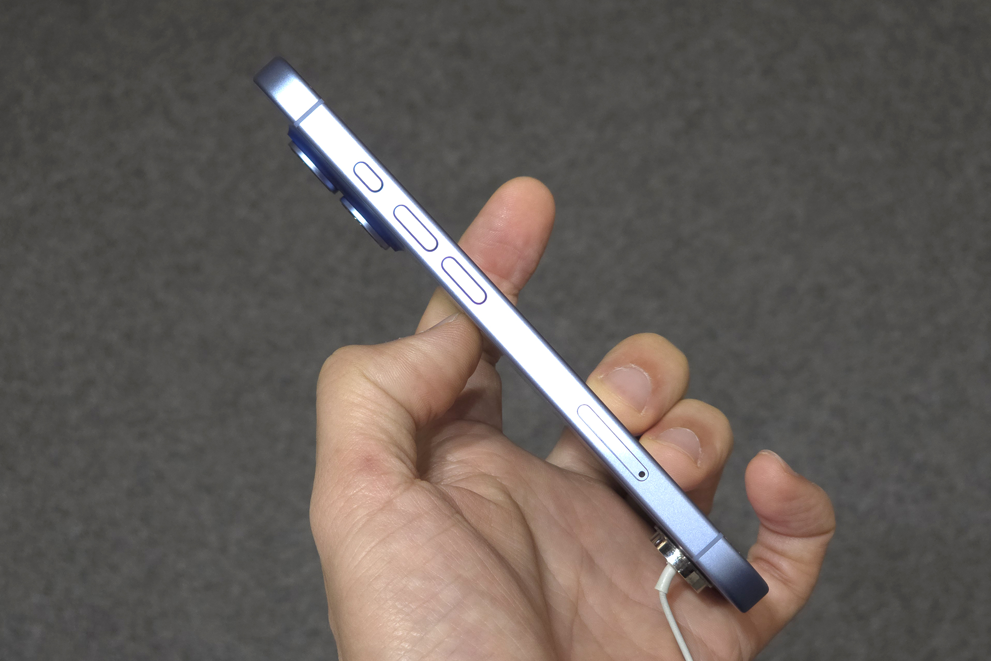 아이폰 17의 옆면을 살펴보면 두께는 7.95mm이고 무게는 177g입니다. 의외로 아이폰 16보다 약간씩 더 늘어난 모습을 보여주었습니다. 그리고 아이폰 17의 결정적인 단점이라고 할 수 있는 부분은 여전히 USB 2.0(480Mbps)의 속도를 제공한다는 점입니다. 그래서 촬영된 사진과 동영상을 유선으로 복사하려면 엄청난 인내심이 있어야 합니다.