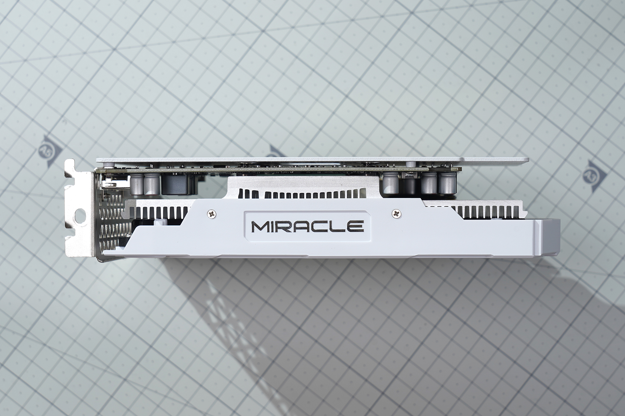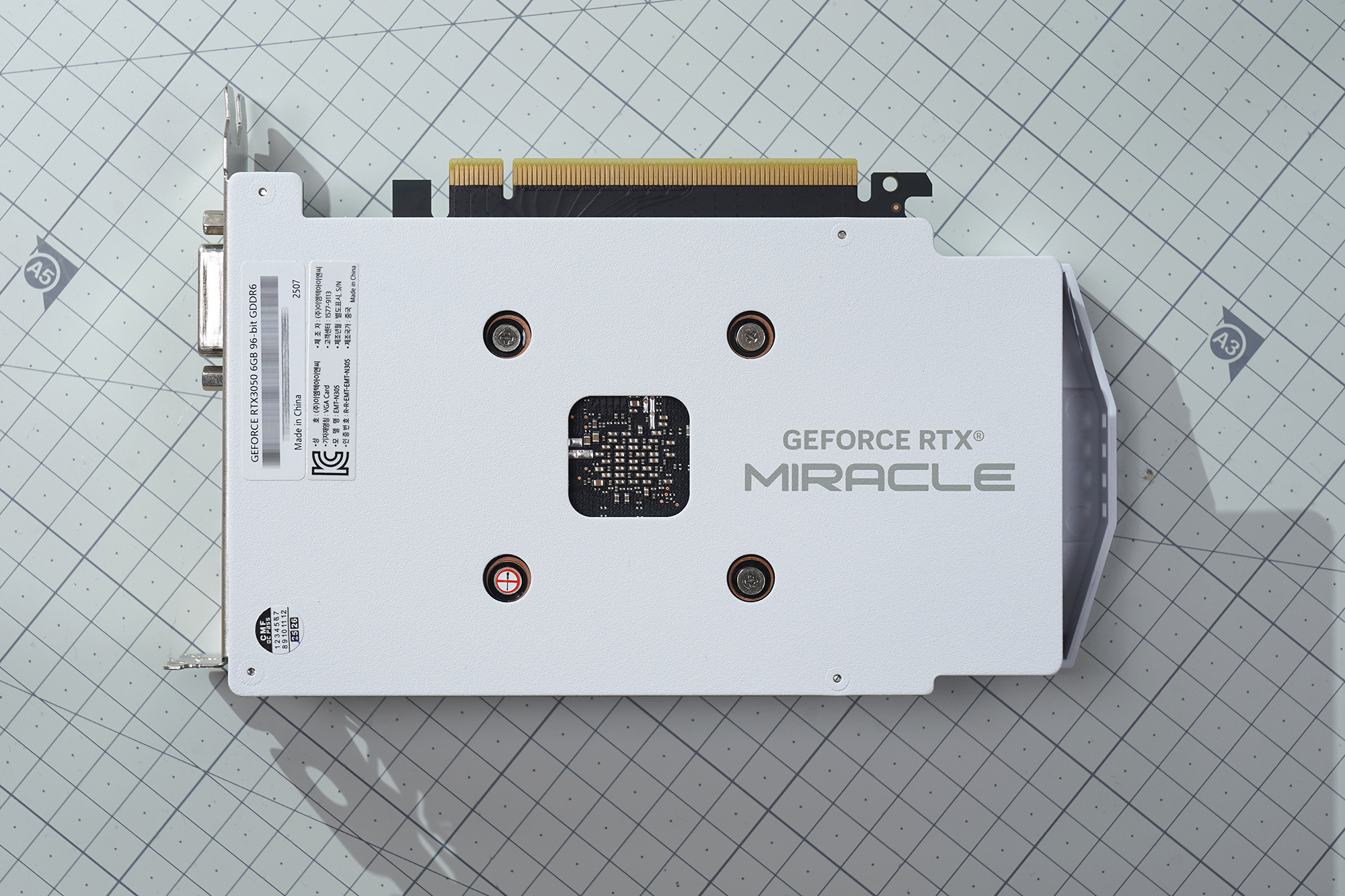 이엠텍 RTX 3050 MIRACLE 그래픽카드의 옆면을 살펴보면 별도의 외부 전원이 들어가지 않는 것을 확인할 수 있는데요. 간편하게 사용할 수 있다는 장점이 있지만 반대로 큰 성능을 기대하기 어렵다는 단점도 가지고 있는 구조라고 할 수 있습니다.