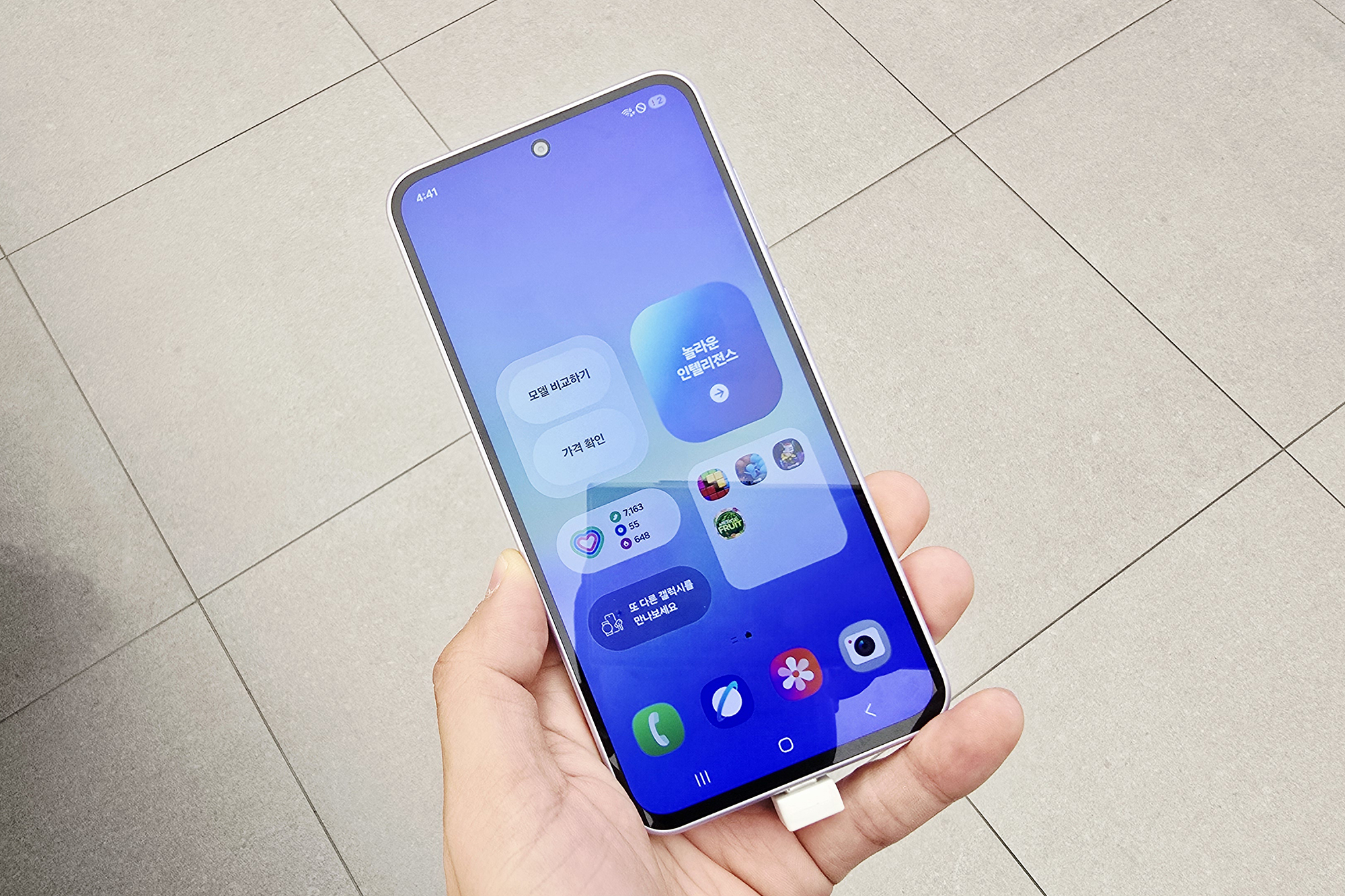 중보급기 수준의 스마트폰 같은 경우에는 상하좌우 베젤의 두께가 약간의 차이가 있는 경우가 많은데요. 갤럭시 A36 5G의 경우에는 아래쪽에 약간 두꺼운 형태로 마무리되었지만 크게 거슬리는 편은 아니라고 생각되었습니다.