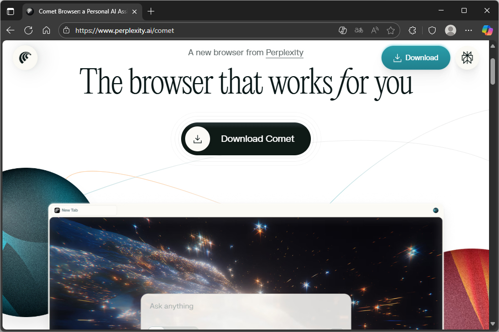 Comet browser by Perplexity is the AI browser that acts as a personal assistant. Automate tasks, research the web, organize your email, and more with Comet.