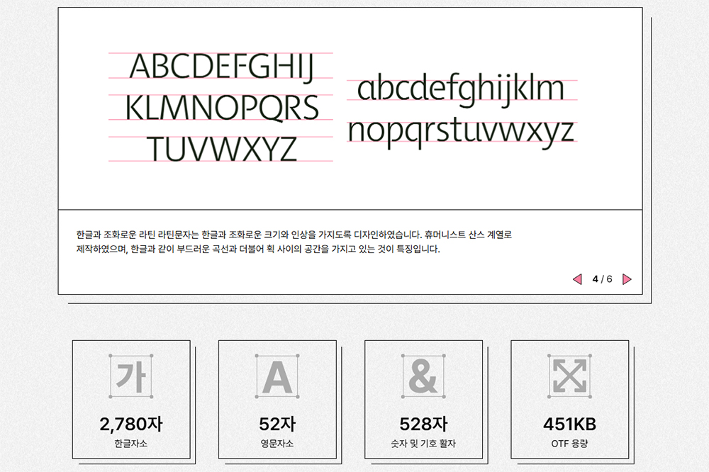 이번에 공개된 폰트는 가비아와 홍익대학교과 한글날을 기념해서 공동으로 제작된 글꼴인데요. 특히 가비아 던체의 경우에는 선연우 디자이너가 제작에 참여했고 네모틀에 꽉 찬 형태로 제작되어서 제목용으로 활용하기에 적합한 특징이라고 생각되었습니다.
