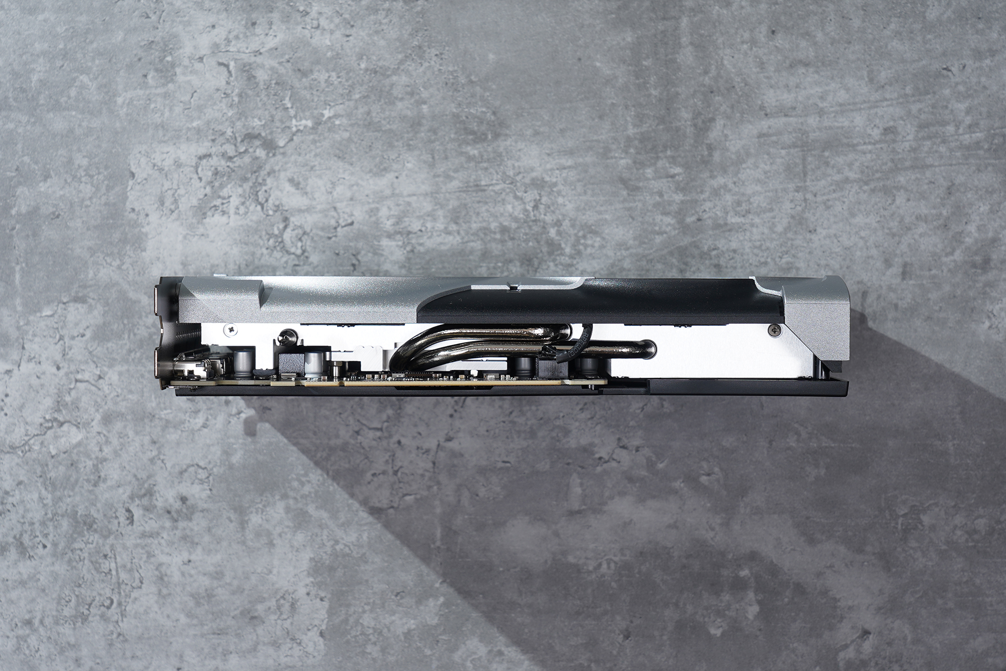 뒤쪽에는 메탈로 제작된 백플레이트가 장착되어 있는데요. 그래픽카드의 각종 소자들을 보호하는 역할을 하는 것은 물론이고 히트 싱크 부분이 일부 제거되어 있어서 발열 해소에 도움을 줍니다.