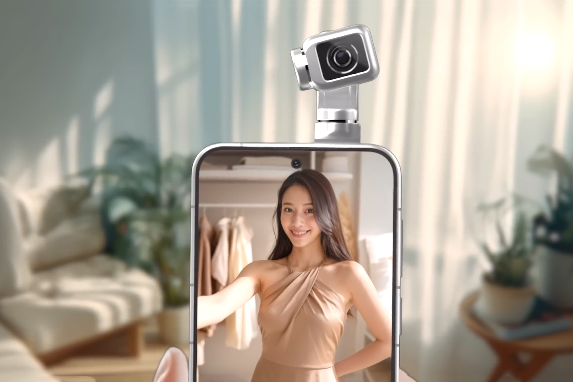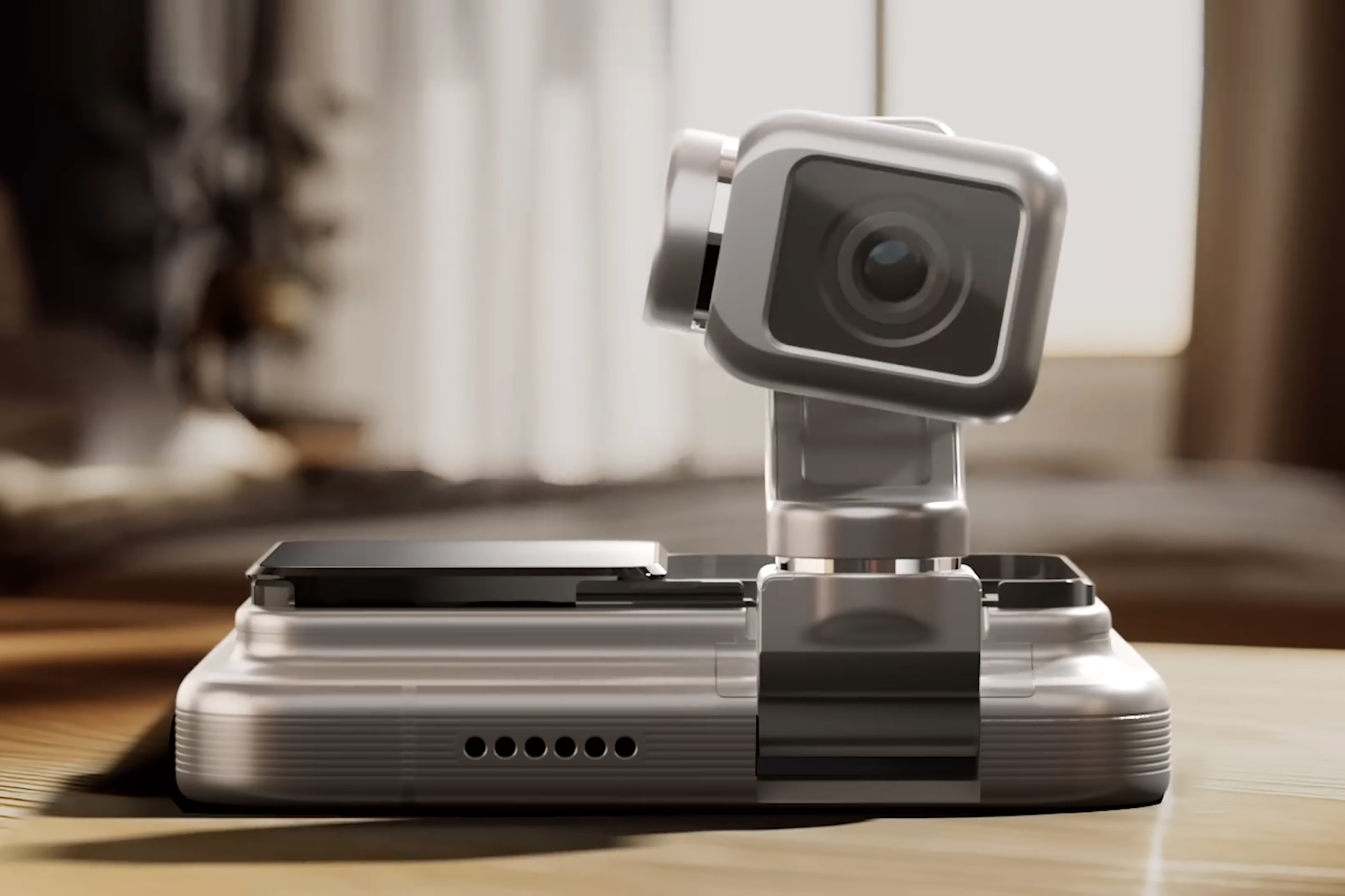 아너 로봇 폰(HONOR ROBOT PHONE)의 가장 큰 특징은 일종의 짐벌 형태의 카메라를 스마트폰 본체에 내장하고 있다는 점인데요. 형상 자체는 DJI 오즈모 포켓3와 유사한 편이고 다양한 각도로 조절할 수 있다는 특징이 있습니다.