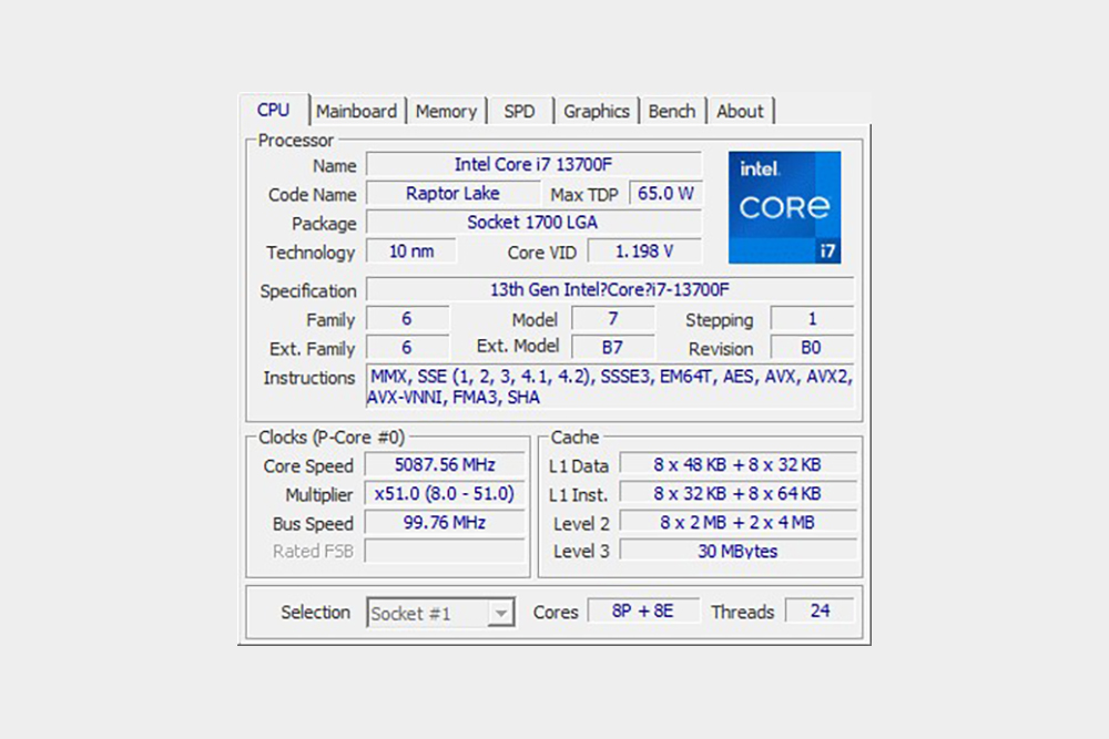 만리 RTX 5070 북극여우 그래픽카드의 정보를 GPU-Z를 통해서 확인해 보면 GPU는 GB205이고 6,144개의 쿠다 코어를 제공하는 것을 확인할 수 있습니다. 그리고 메모리 용량은 12GB인데요. 최근과 같이 VRAM이 중요해진 시대에 의미 있는 부분이라고 할 수 있습니다. 그리고 13세대 인텔 13700F 프로세서와 함께 테스트를 진행했습니다.
