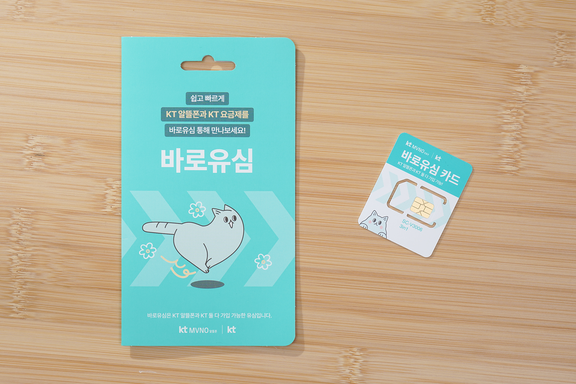 제가 8,800원에 구매한 KT바로유심은 KT 알뜰폰에 가입할 수 있다는 문구가 표시되어 있는데요. 모델명은 SC-V3006이고 귀여운 고양이가 인쇄되어 있다는 점이 인상적이었습니다.