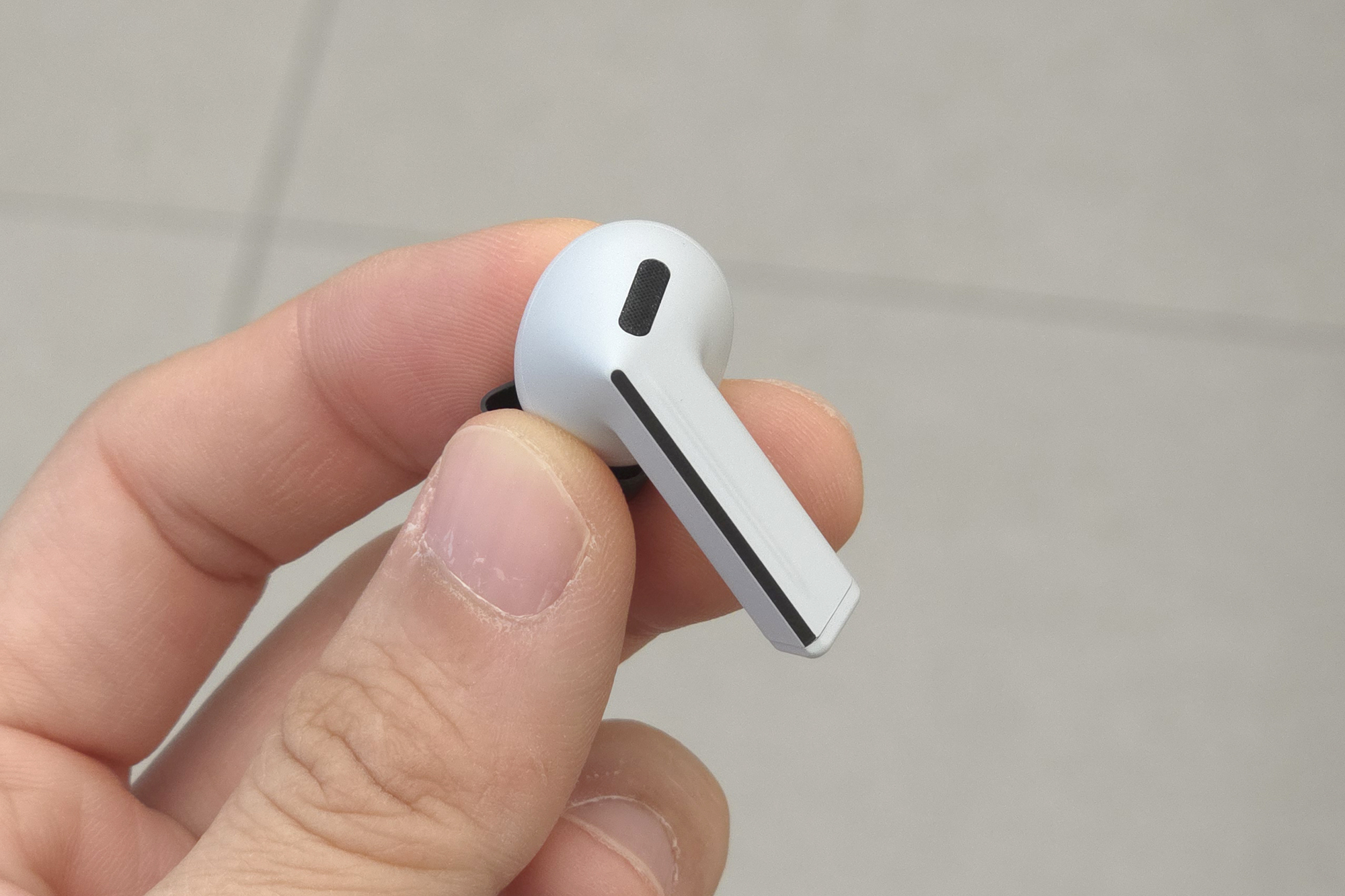갤럭시 버즈3 FE의 디자인은 버즈3 프로처럼 블레이드라는 콩나물 줄기가 있는 형태로 디자인되었는데요. 블레이드를 위아래로 스와이프해서 음량을 조절하거나 핀치 기능을 이용해서 음악을 제어하거나 통화를 할 수 있습니다. 볼륨 조절 기능은 상당히 편리한 편입니다.
