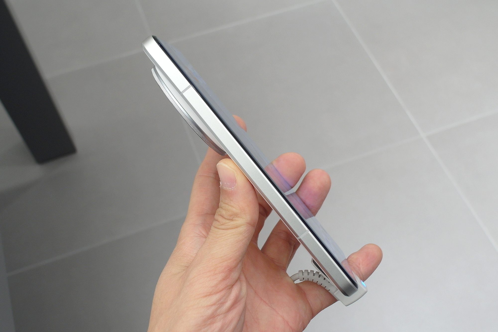 샤오미 15 울트라 스마트폰에는 올 어라운드 리퀴드 디스플레이가 적용되었는데요. 베젤이 슬림하다는 것을 상징하는 마케팅 용어 같은데요. 베젤의 두께가 상당히 얇은 편이어서 몰입감이 높은 편입니다. 그런데 모서리 부분이 약간 라운드처리되어 있다는 점은 저에게는 불편함으로 다가왔습니다.