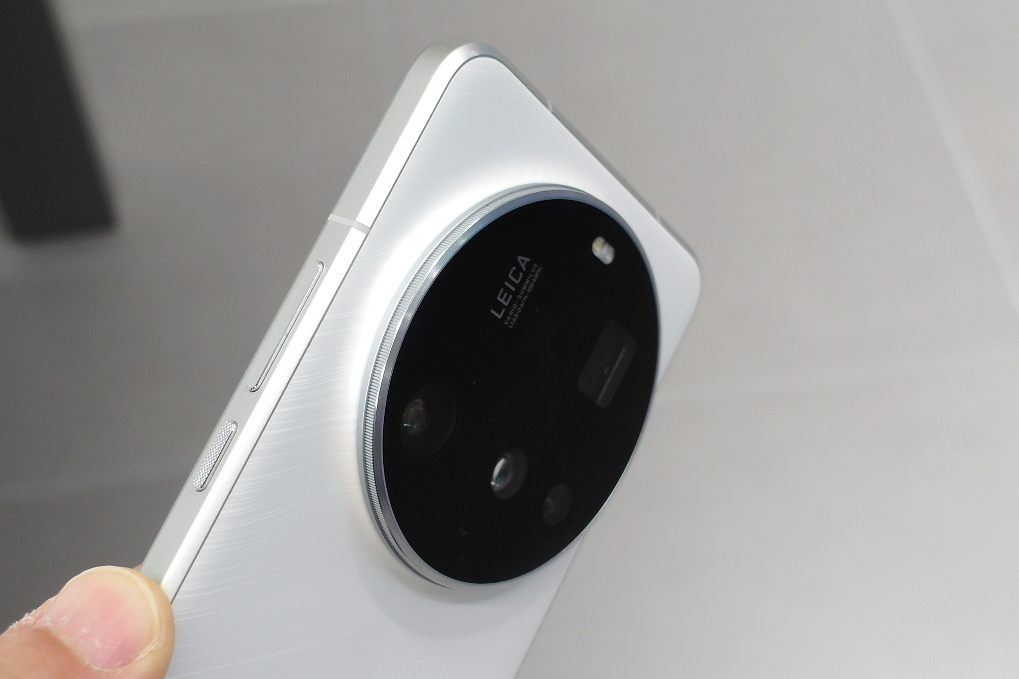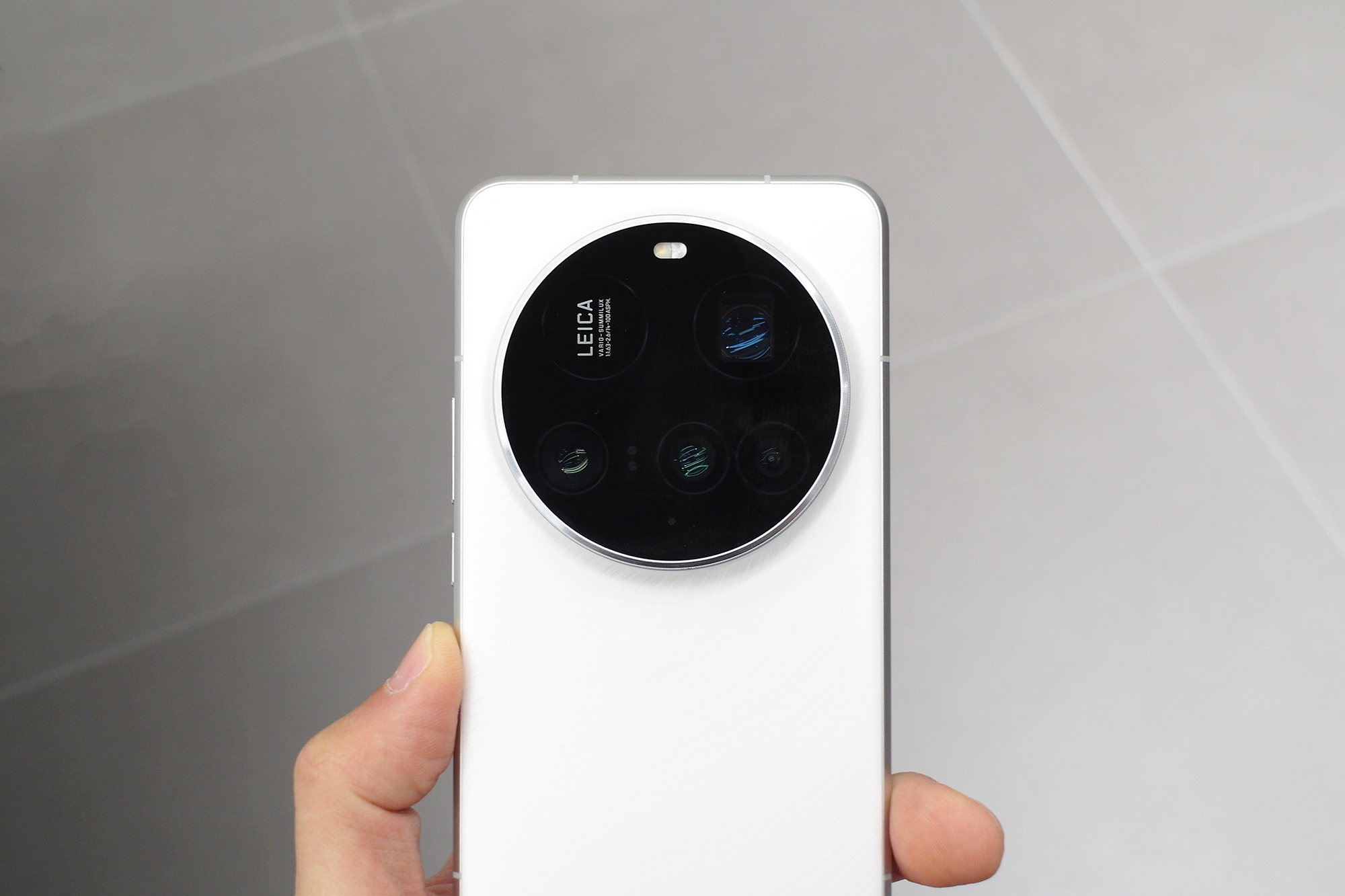 샤오미 15 울트라 스마트폰의 색상은 화이트와 블랙 그리고 실버 크롬 3가지로 출시되었는데요. 이번 리뷰에서 살펴보고 있는 화이트 색상의 경우에는 표면에 사선으로 약간의 무늬가 들어있는 것을 확인할 수 있습니다.
