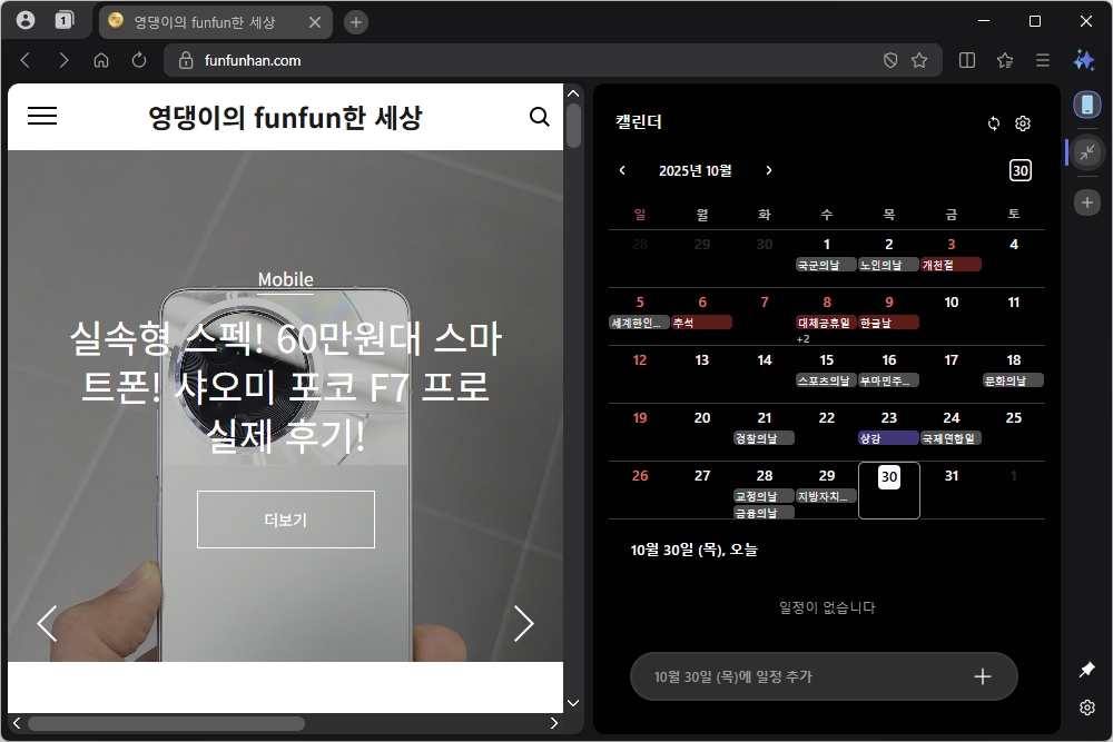삼성 인터넷 브라우저 PC 버전의 추가적인 기능을 살펴보면 인공지능 AI를 활용한 요약과 번역 기능을 제공하는 것은 물론이고 달력과 같은 기능들도 준비된 것을 확인할 수 있습니다. 그리고 Chromium 기반으로 제작되었기 때문에 확장 프로그램들도 활용할 수 있다고 합니다. 그런데 아직 약간의 호환성 문제가 있는 것으로 보입니다,