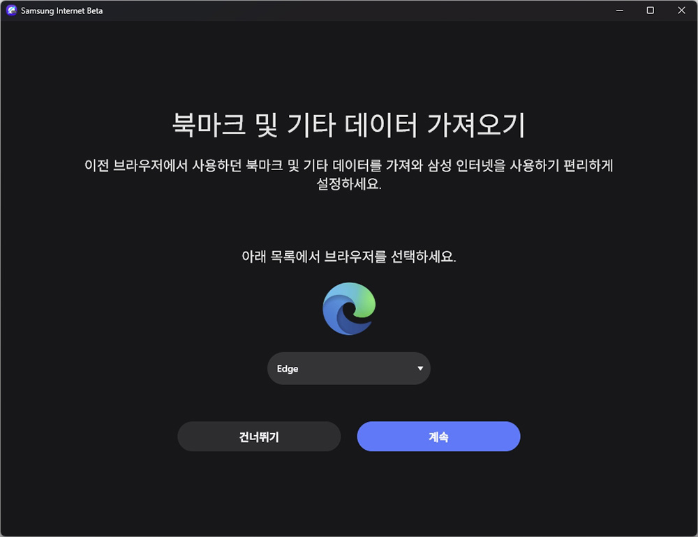 설치가 완료되면 초기 설정 과정에 들어가는데요. 삼성 인터넷 브라우저 PC 버전을 사용하다가 발생하는 오류를 삼성과 공유할 것인지에 대한 옵션을 선택할 수 있습니다.
