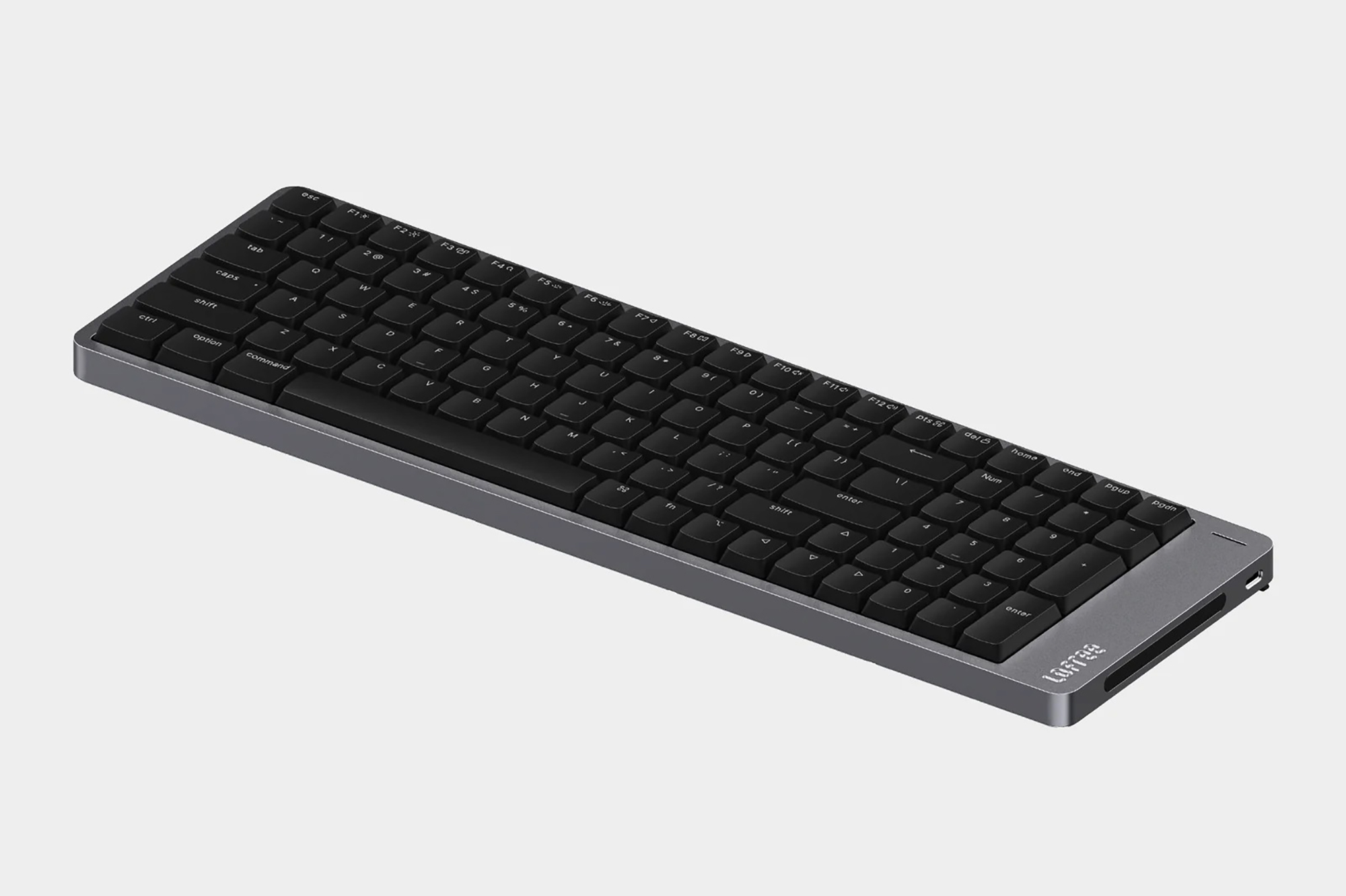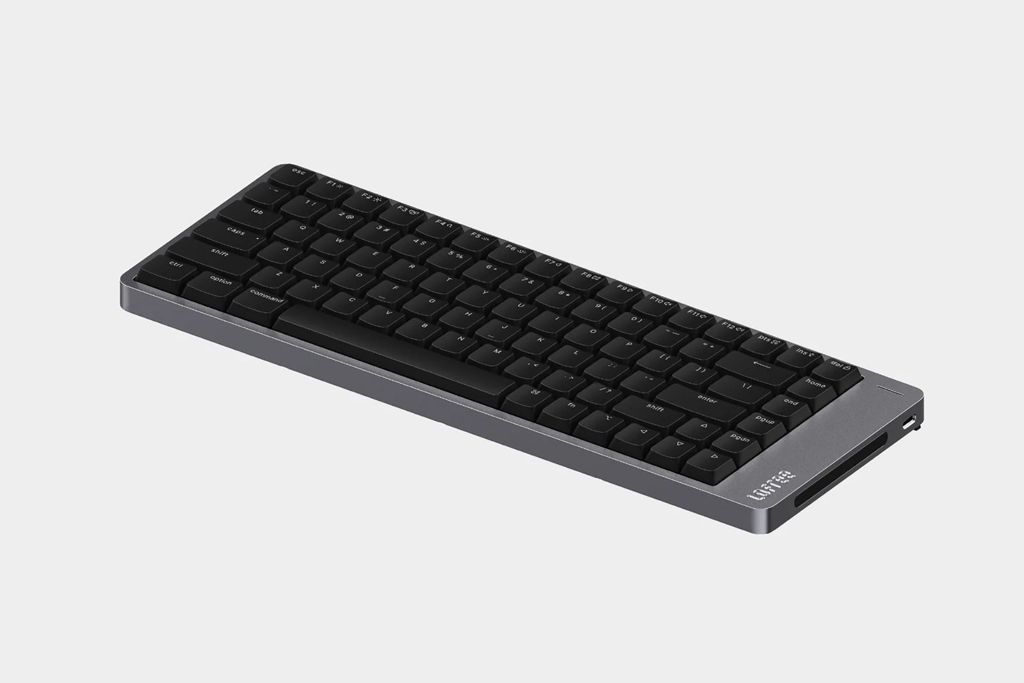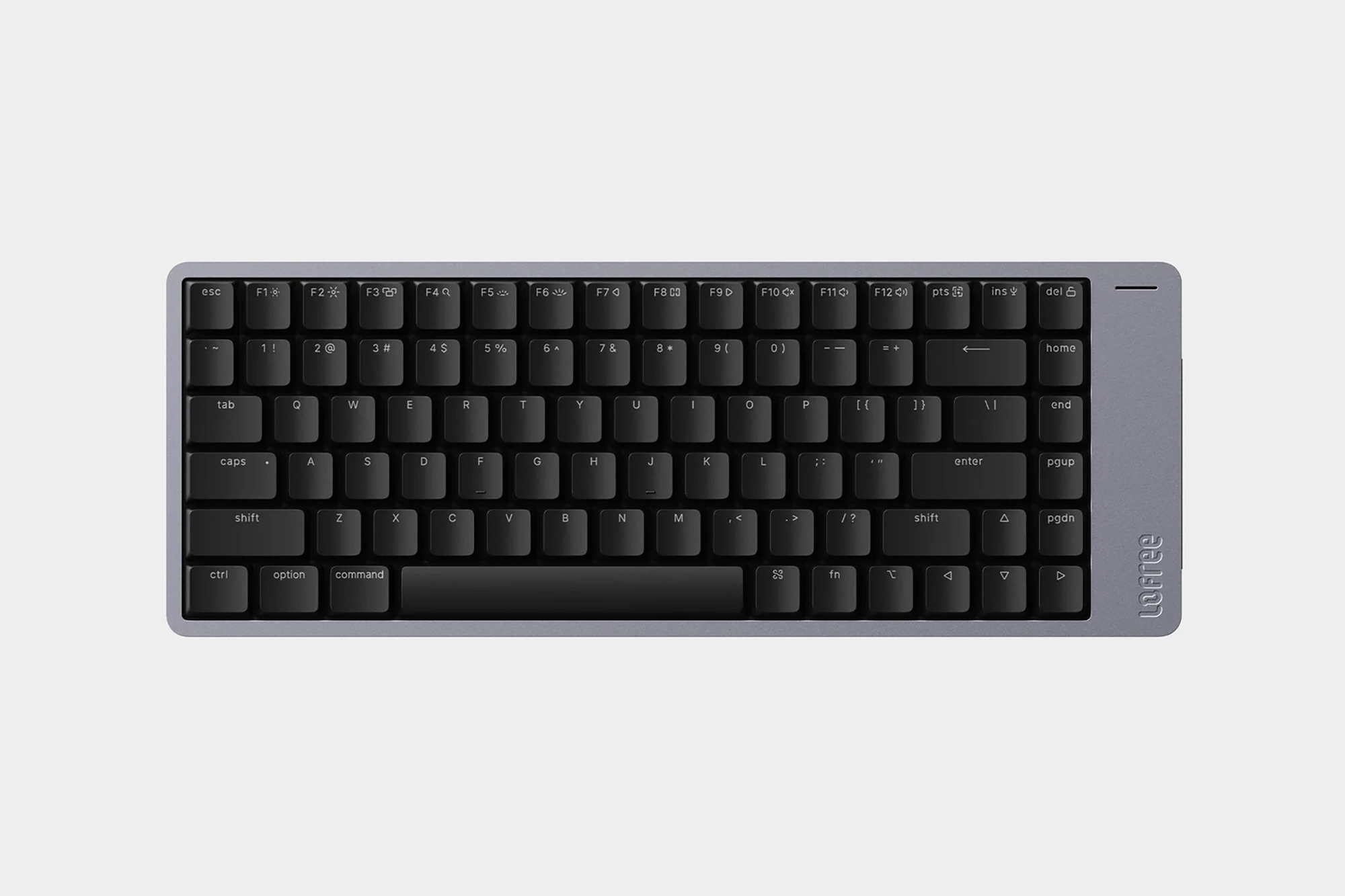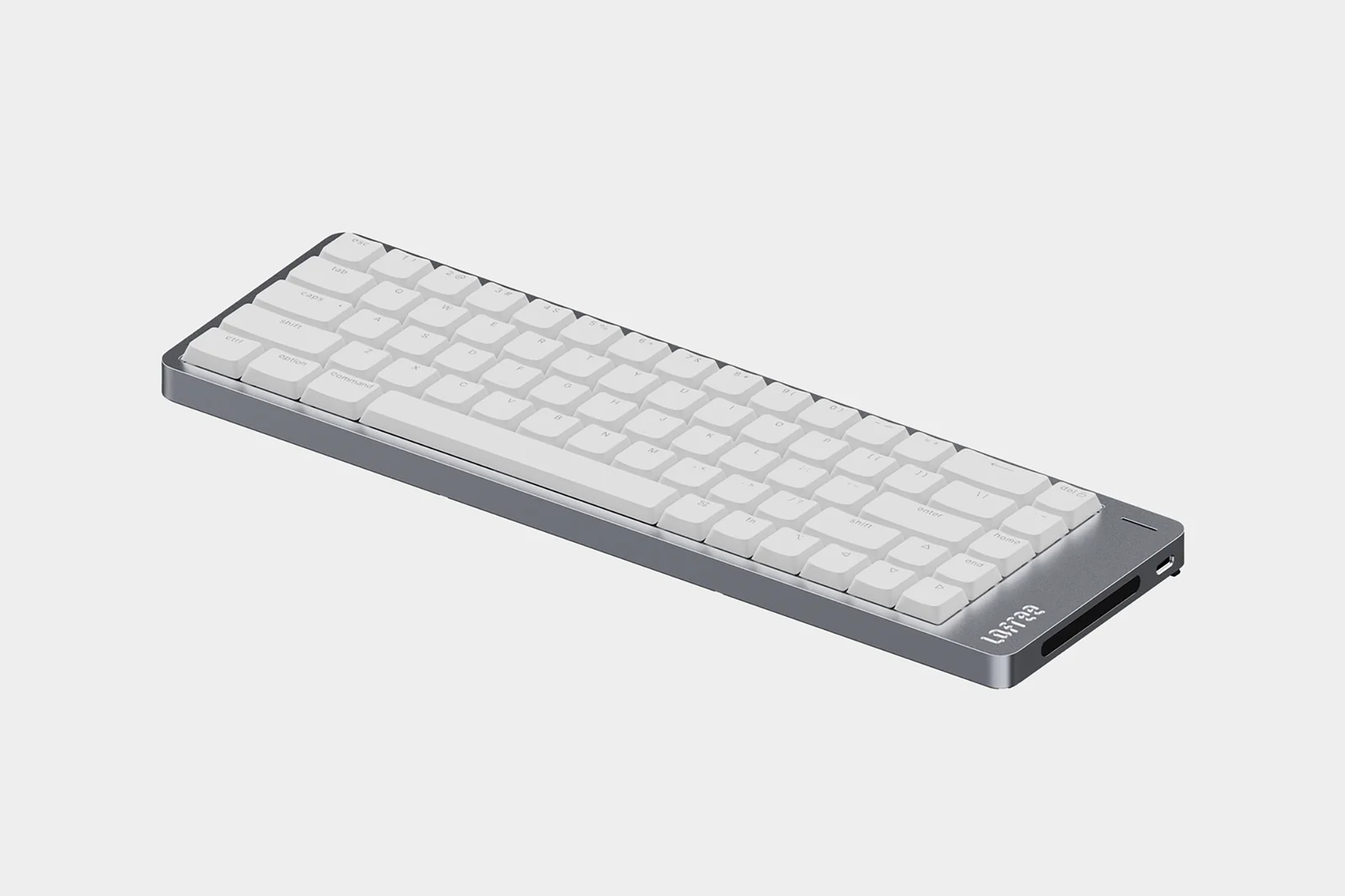 로프리 플로우2 68키는 가장 사이즈가 작은 제품인데요. 상당에 펑션키가 없는 65% 레이아웃으로 제작되어서 책상 위에 공간이 부족한 분들에게 적합한 제품이라고 할 수 있습니다. 그리고 바디 자체는 알루미늄 아노다이징으로 제작되었는데요. 세련된 느낌을 주는 편이고 오랜 시간 사용해도 변형이 적다는 장점이 있습니다.