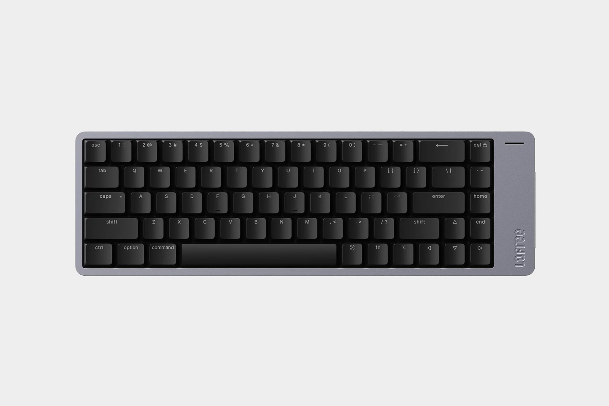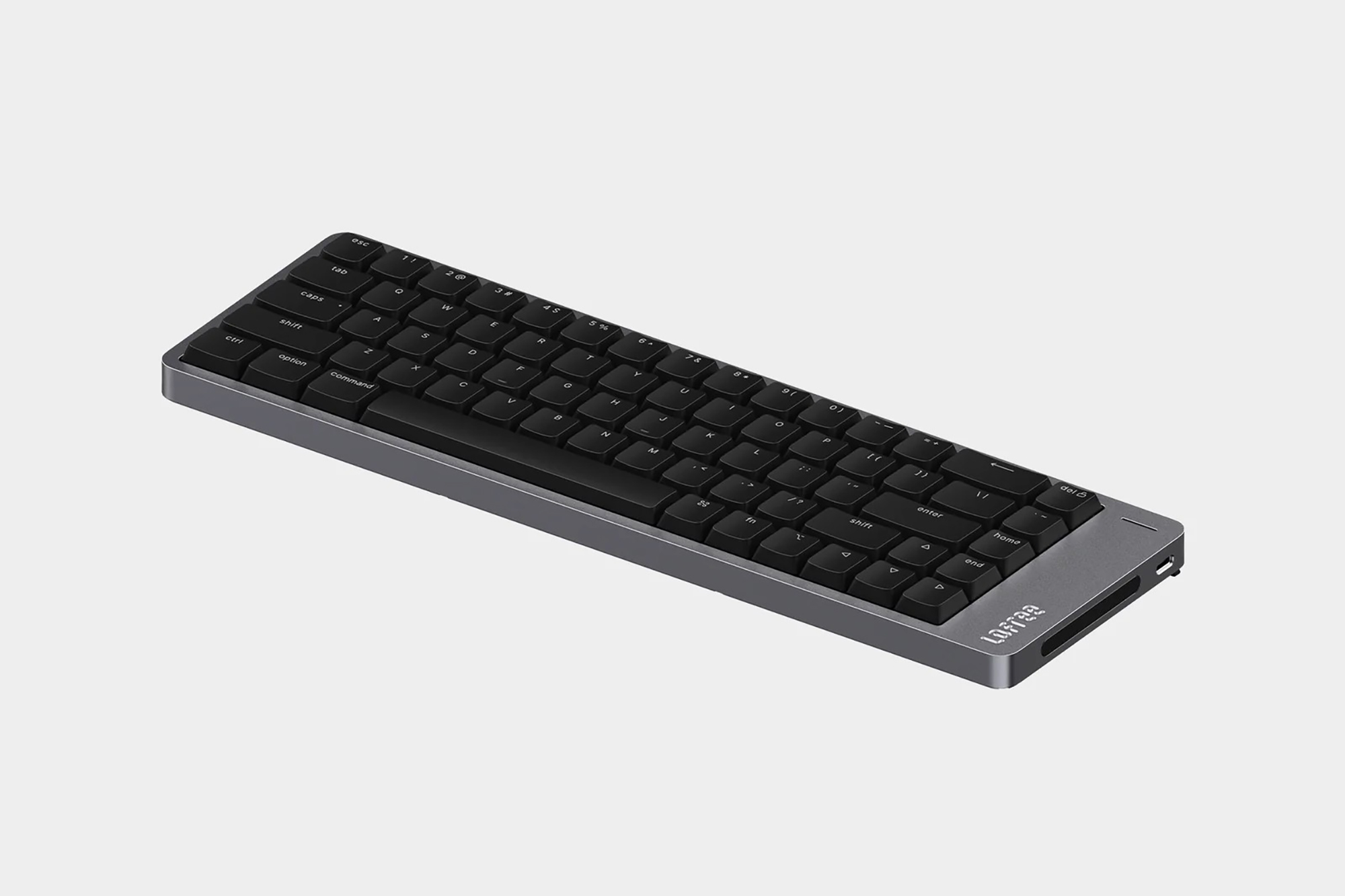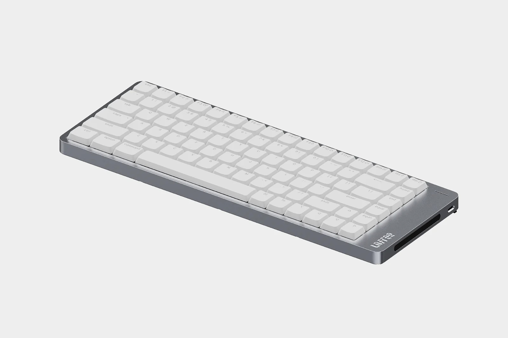 로프리 플로우2 68키는 가장 사이즈가 작은 제품인데요. 상당에 펑션키가 없는 65% 레이아웃으로 제작되어서 책상 위에 공간이 부족한 분들에게 적합한 제품이라고 할 수 있습니다. 그리고 바디 자체는 알루미늄 아노다이징으로 제작되었는데요. 세련된 느낌을 주는 편이고 오랜 시간 사용해도 변형이 적다는 장점이 있습니다.
