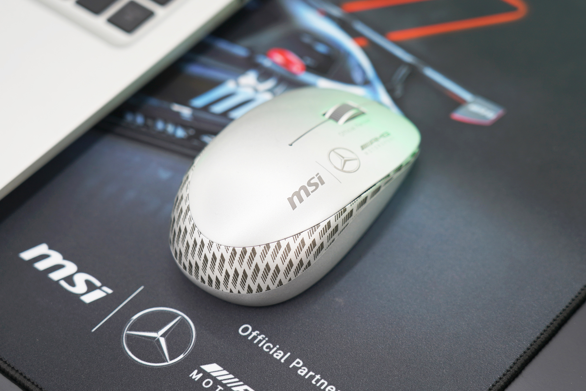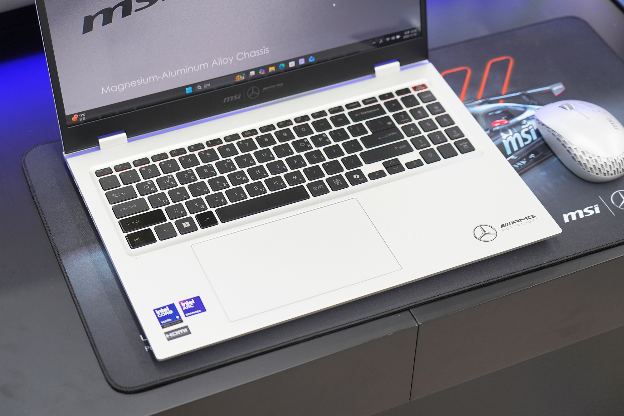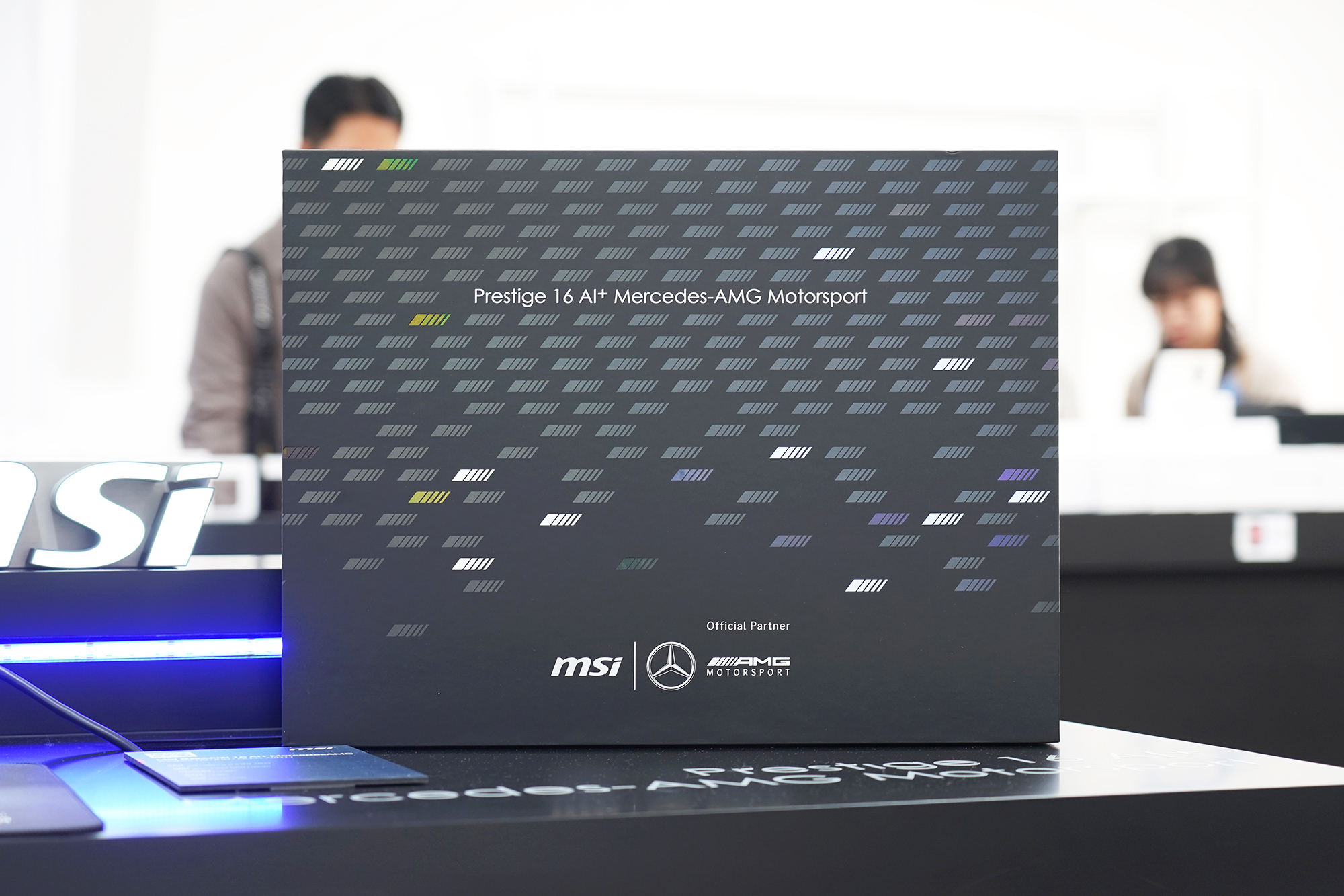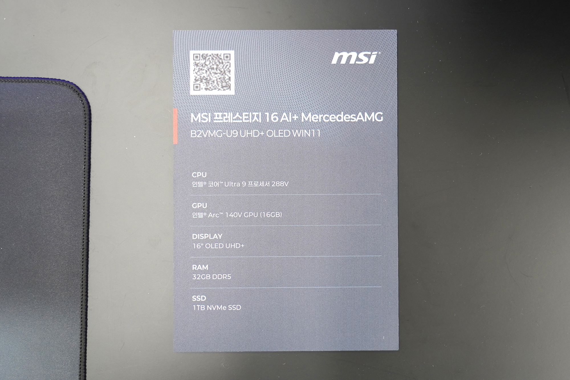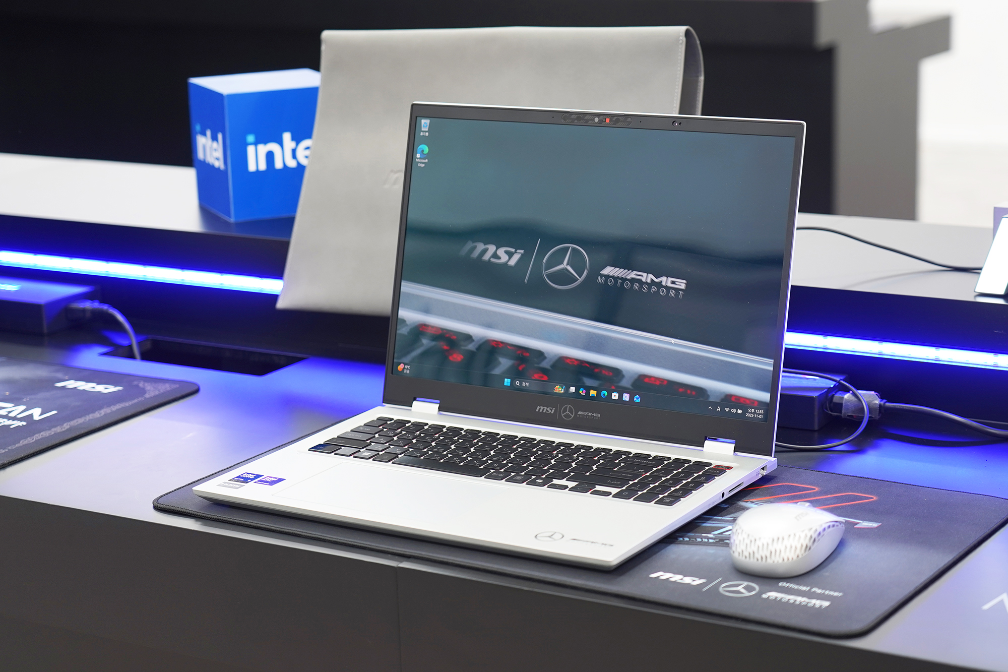 프레스티지 16 AI+ MercedesAMG는 이름에서도 알 수 있듯이 메르세데스 AMG 모토스포츠와 협업을 통해서 개발된 제품입니다. 그래서 패키지부터 본체 그리고 심지어 마우스까지 메르세데스 로고가 인쇄되어 있다는 점이 독특한 부분이었습니다. 평소에 모토스포츠를 좋아하던 분들에게는 메리트가 있을 것으로 예상됩니다.