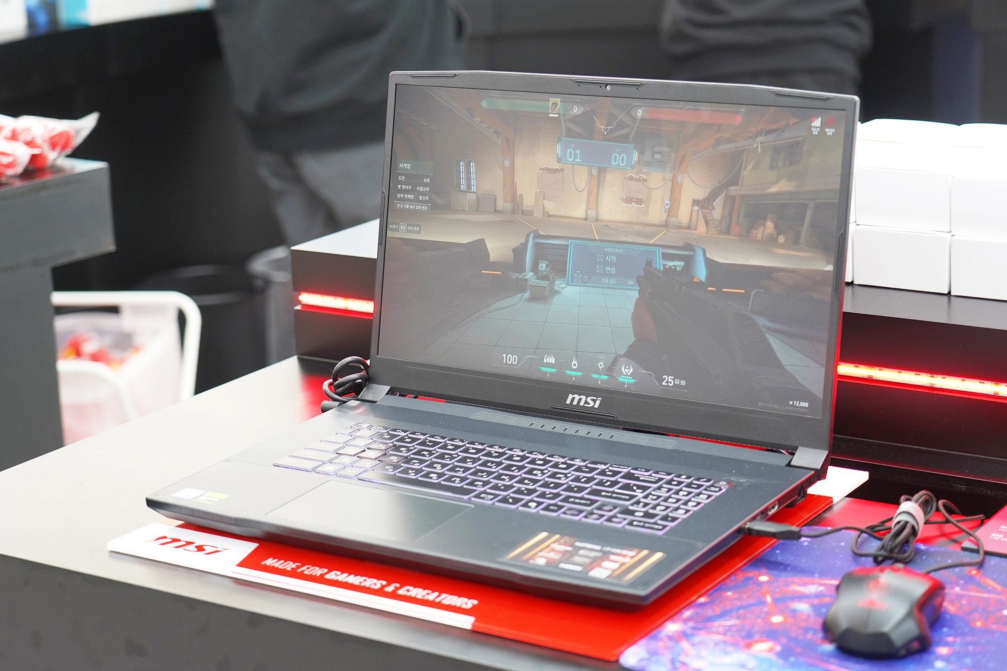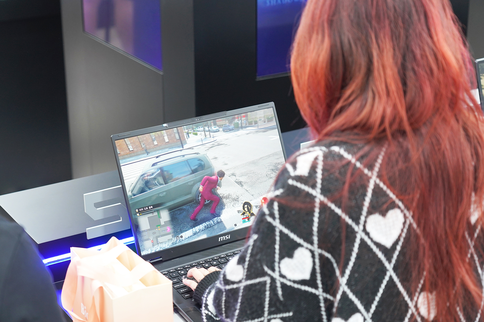 두 번째 미션은 다양한 MSI 게이밍 노트북에서 발로란트를 체험하는 형식으로 진행이 되었는데요. 아마도 평소에 게임을 거의 해보지 않았을 것 같은 분들도 즐겁게 게임을 플레이하는 모습이 인상적이었습니다. 사실 이러한 팝업스토어가 번화가에서 진행되는 이유는 이렇게 다양한 사용자들에게 체험 기회를 제공하는 목적도 있는 것으로 보입니다. 그리고 미션 사은품으로는 3가지 종류의 차량용 방향제가 제공되었습니다.