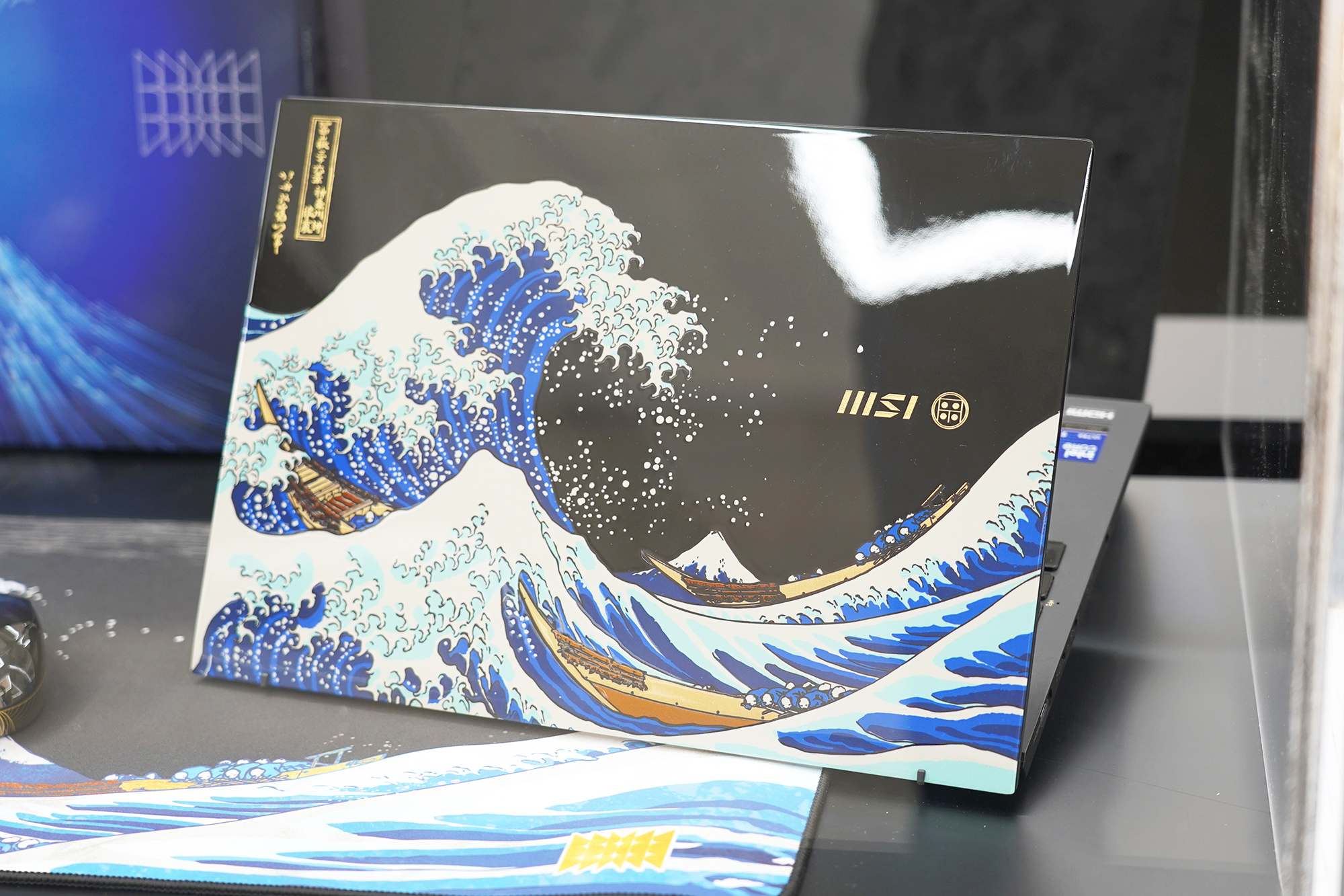 프레스티지 13 AI+ 우키요에 에디션은 MSI 노트북 팝업 in 성수에 전시된 노트북 중에서 가장 특별한 제품이었는데요. 마키에 옻칠 기법을 금박 가루를 사용해서 수작업으로 완성한 제품이라고 합니다. 실제로 살펴보면 일본 느낌이 강하게 나는 편입니다. 그래서 일본쪽 비즈니스 관계에서 선물용으로 활용해도 좋을 것 같습니다.