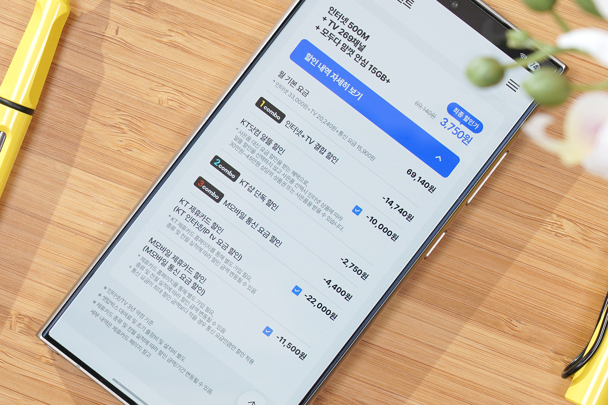 33,000원(인터넷) + 20,240원(IPTV) + 15,900원(모바일) = 69,140원