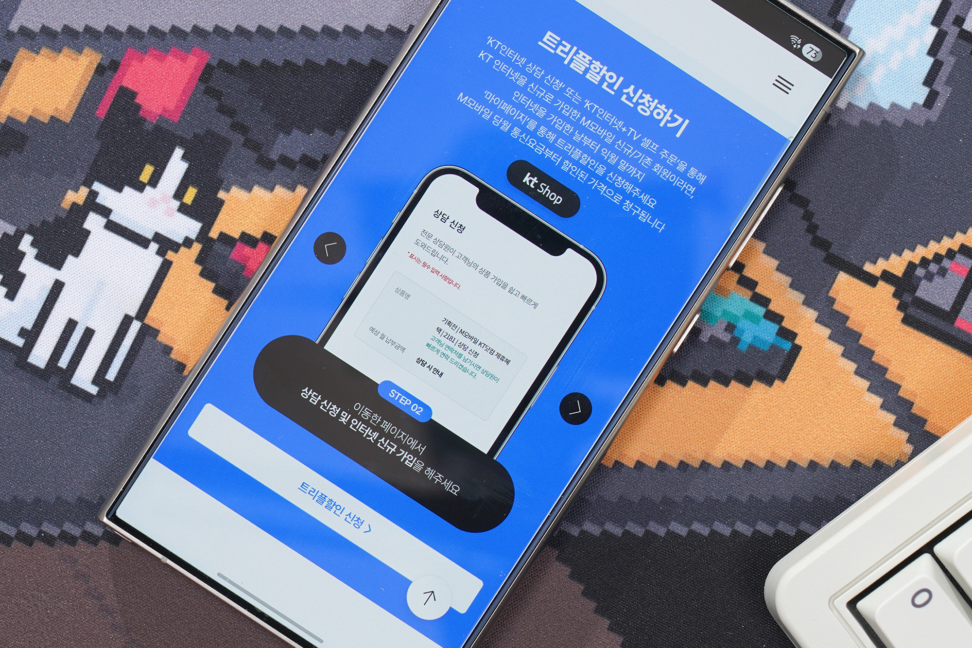 KT M모바일과 같은 알뜰폰 사업자들의 가장 큰 장점은 온라인으로 간단하게 가입할 수 있다는 점인데요. 우선 KT 인터넷 상담 신청을 통해서 주문서를 작성하고 홈페이지에서 트리플할인 신청 버튼을 통해서 별도로 신청해야 합니다. 과정 자체는 어려운 부분이 없습니다.