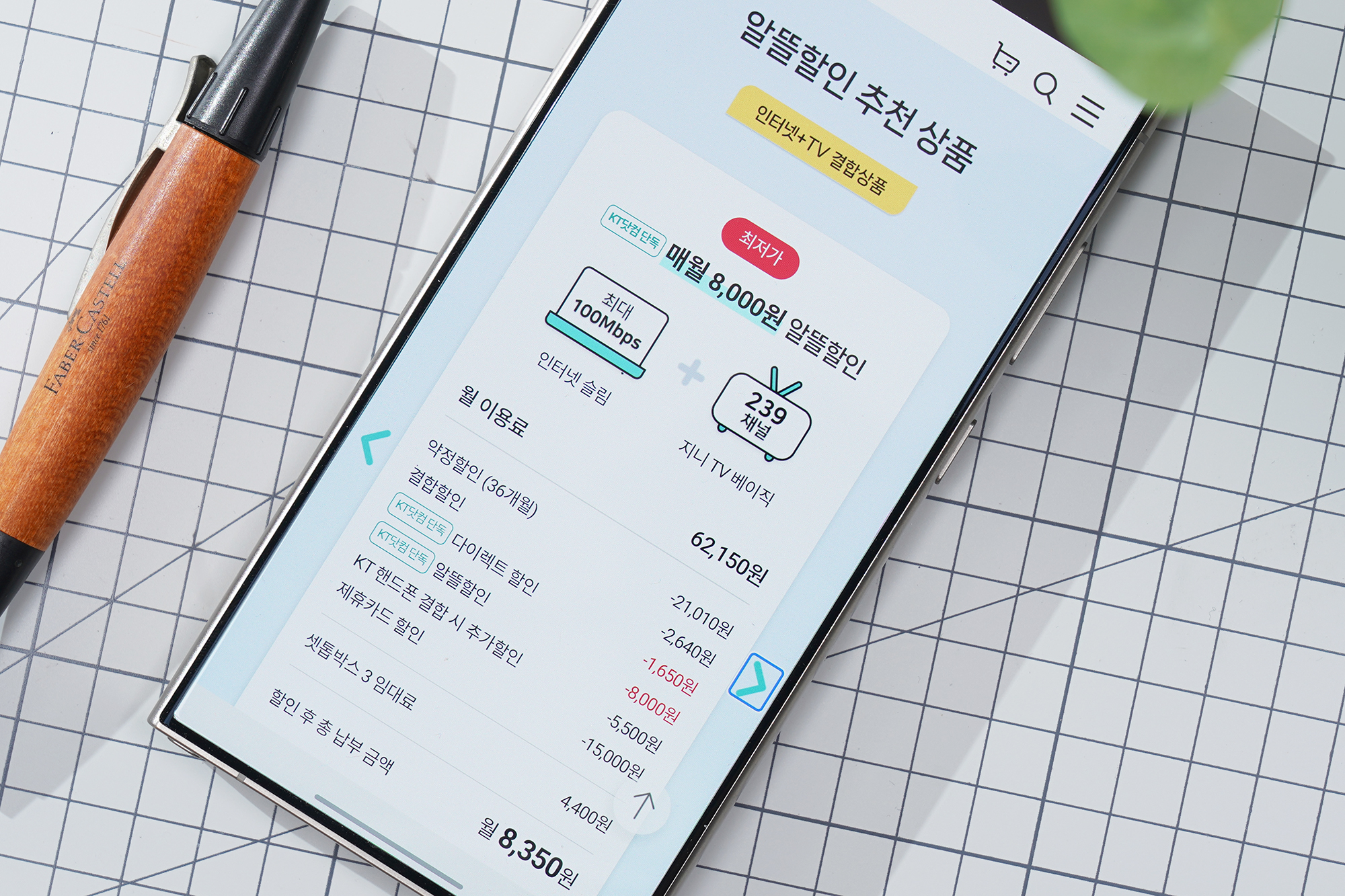 할인 후 총 납부 금액 : 월 8,350원(셋톱박스 3 임대료 제외)