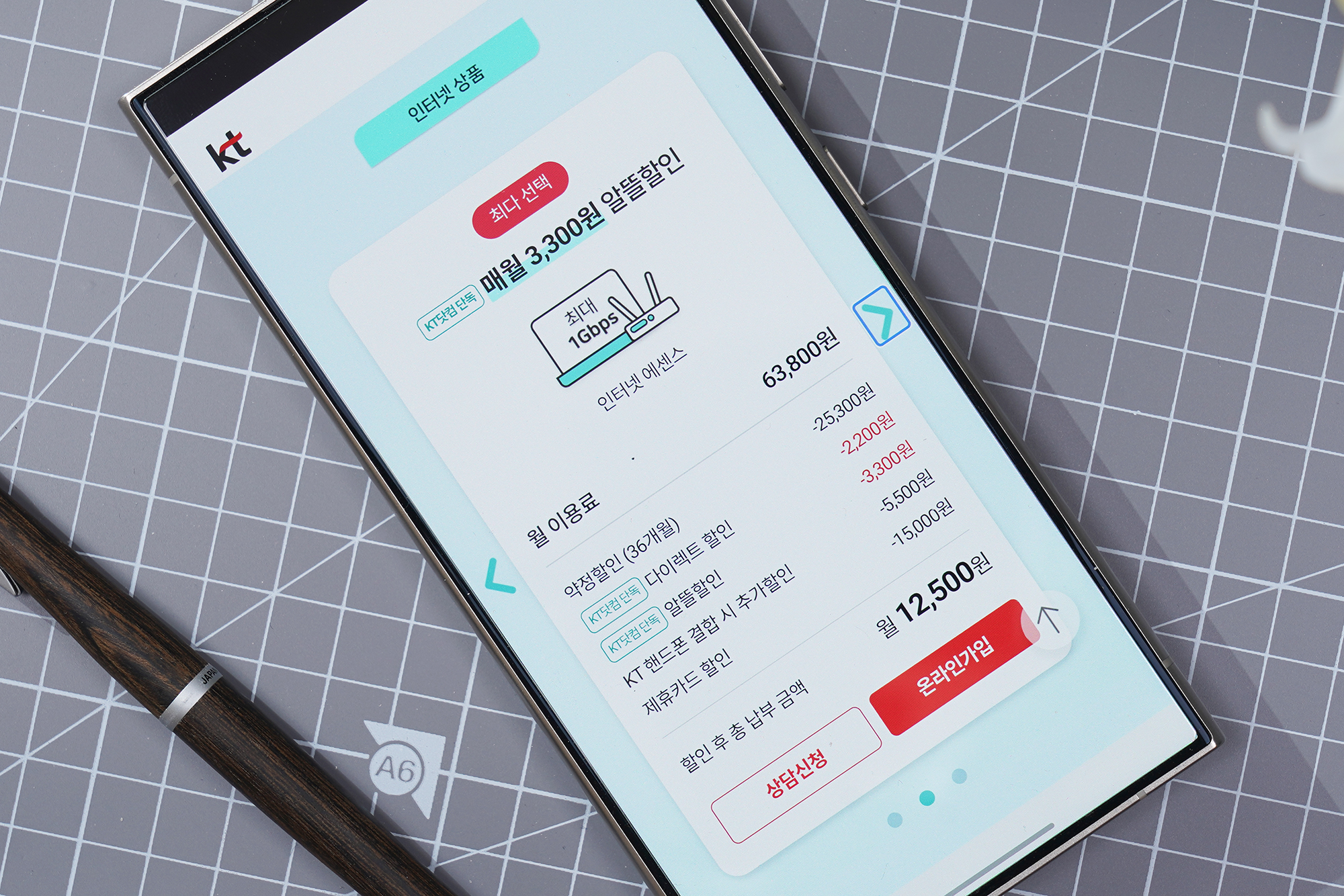 최다 선택 인터넷+TV 결합상품은 인터넷 베이직(500Mbps) + 지니 TV 모든G로 구성되어 있는데요. 일반적인 가정에서 사용하기에 적합한 구성이라고 생각되었고 통신비 가격도 부담스럽지 않은 편입니다.