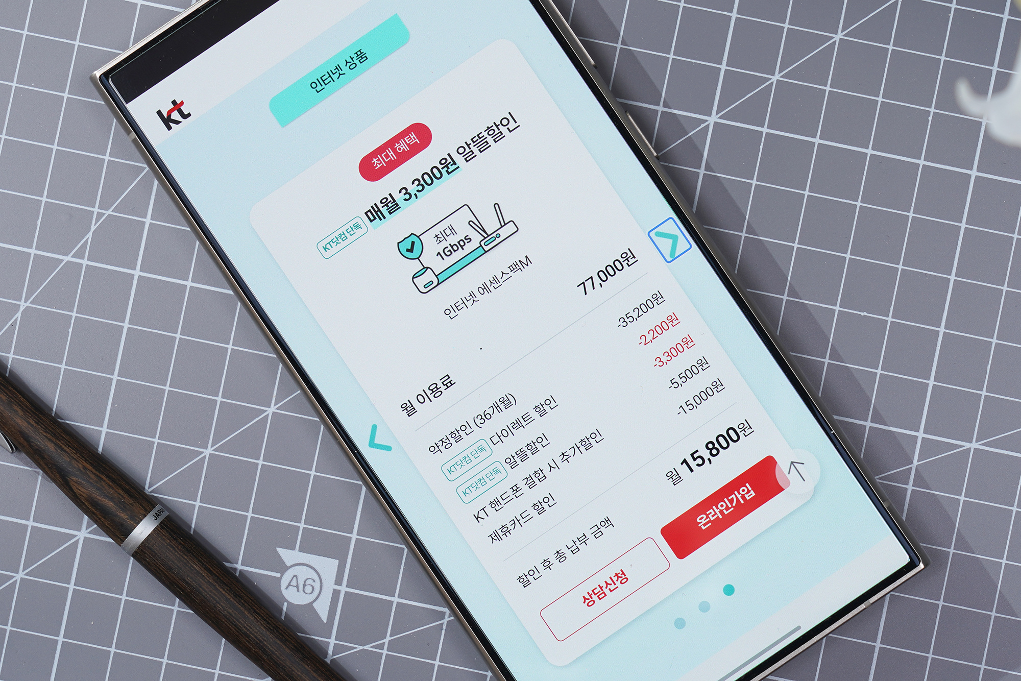 인터넷 에센스팩M(1Gbps) : 월 77,000원