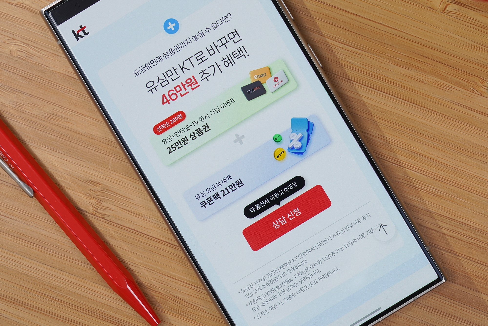 그리고 KT닷컴에서는 새로운 고객 유치를 위한 이벤트로 진행하고 있는데요. 타 통신사 이용 고객 대상으로 유심을 KT로 변경하면 유심+인터넷+TV 동시 가입 이벤트로 46만원 상당의 추가 혜택이 제공됩니다. 통신사 이동 계획이 있는 분들은 이용해 보시는 것을 추천합니다.