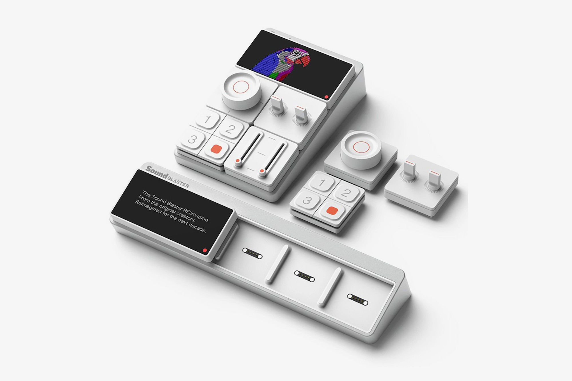 사운드 블라스터 Re:Imagine의 핵심 기능은 모듈형 설계가 적용되었다는 점인데요. 현재 공개된 모듈은 Smart Screen Module, Dual Slider Module, Buttons Module, Knob Module 4가지입니다. 특히 사운드 관련 분야에 집중할 것을 보여주는 구성이라고 할 수 있습니다.