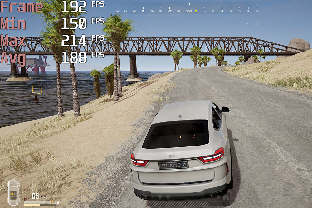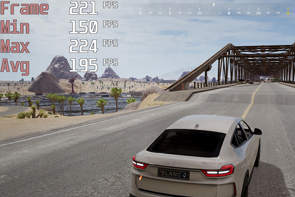 이제 MSI 애프터버너가 실행되는 상태에서 게임을 플레이하면 왼쪽 위에 프레임이 표시되기 시작하고 벤치마크 실행 단축키를 누르면 최소와 최대 그리고 평균 프레임이 같이 표시됩니다. 그리고 폰트 사이즈는 위에서 설명한 대로 리바 튜너에서 변경할 수 있습니다.
