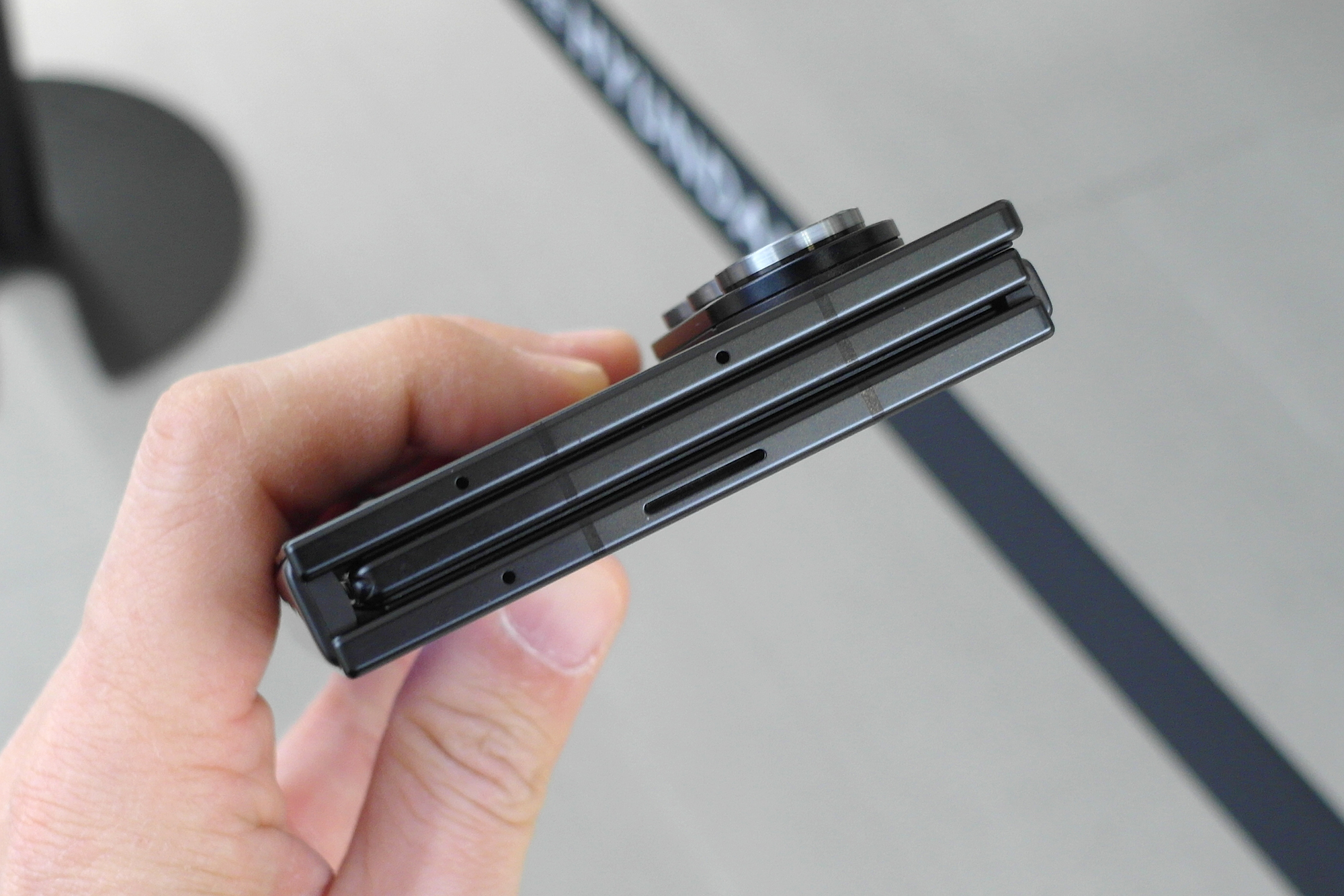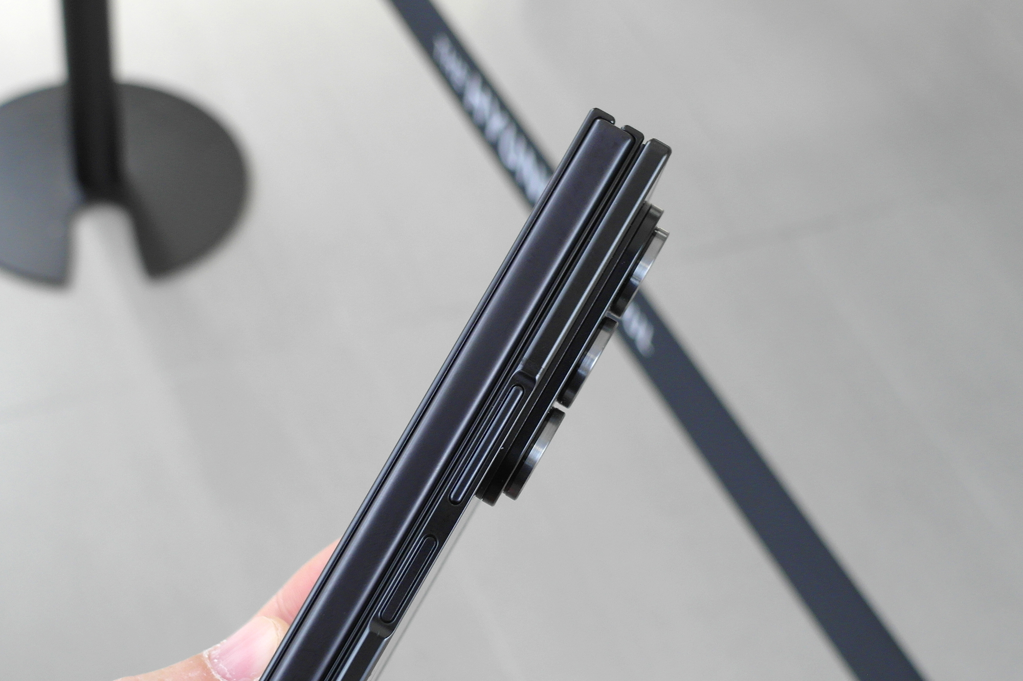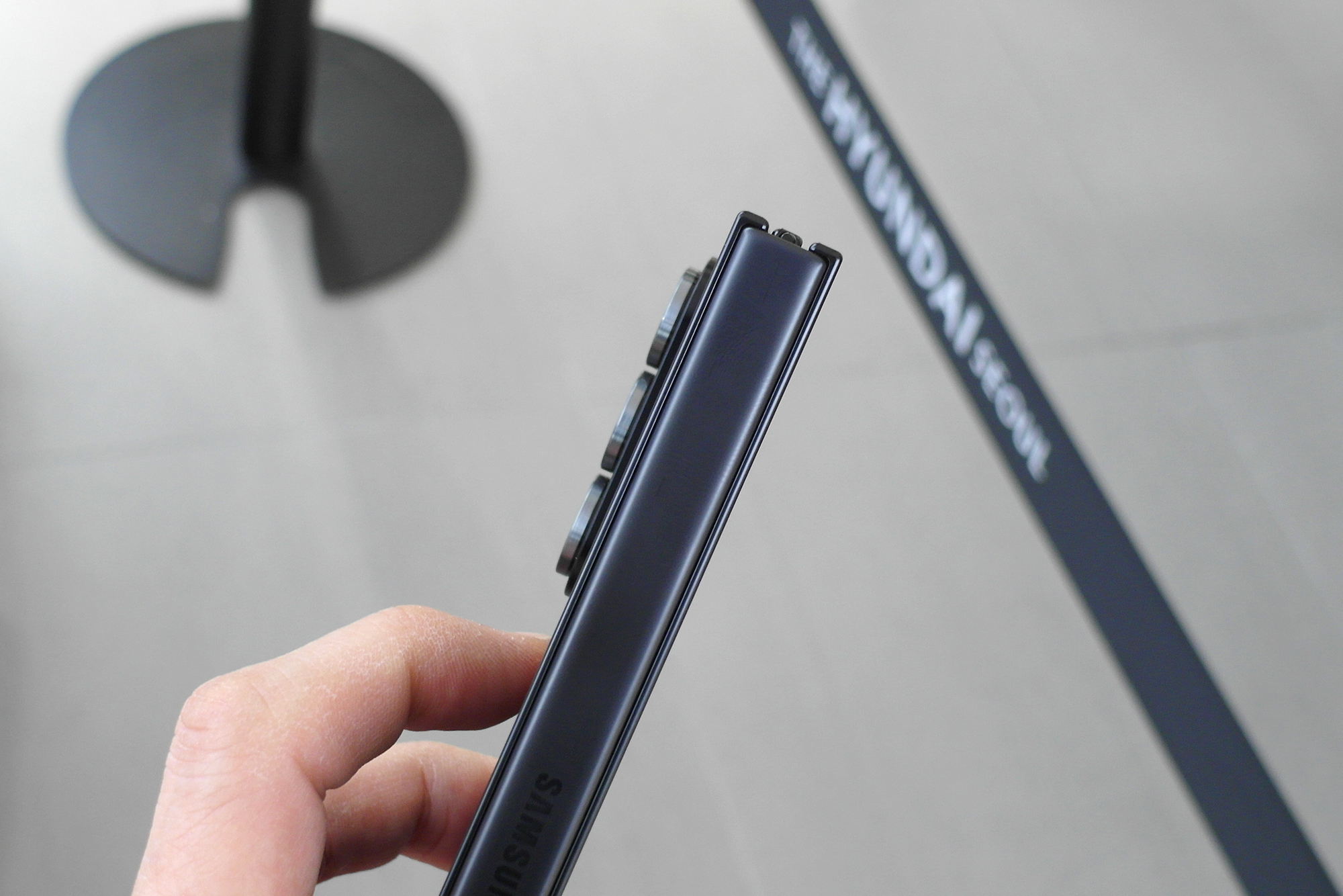갤럭시 Z 트라이폴드를 펼친 상태에서도 두께를 살펴보면 카메라 섬 부분은 4mm, 중간은 4.2mm 그리고 가장 오른쪽은 3,9mm로 제작되었습니다. 미세하지만 단차가 존재하고 예민한 분들은 이러한 부분이 약간 거슬릴 수 있을 것으로 예상합니다.