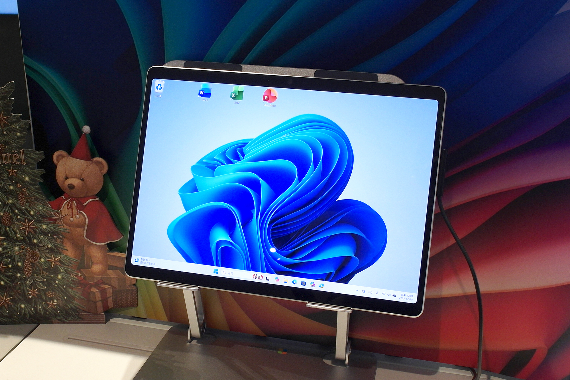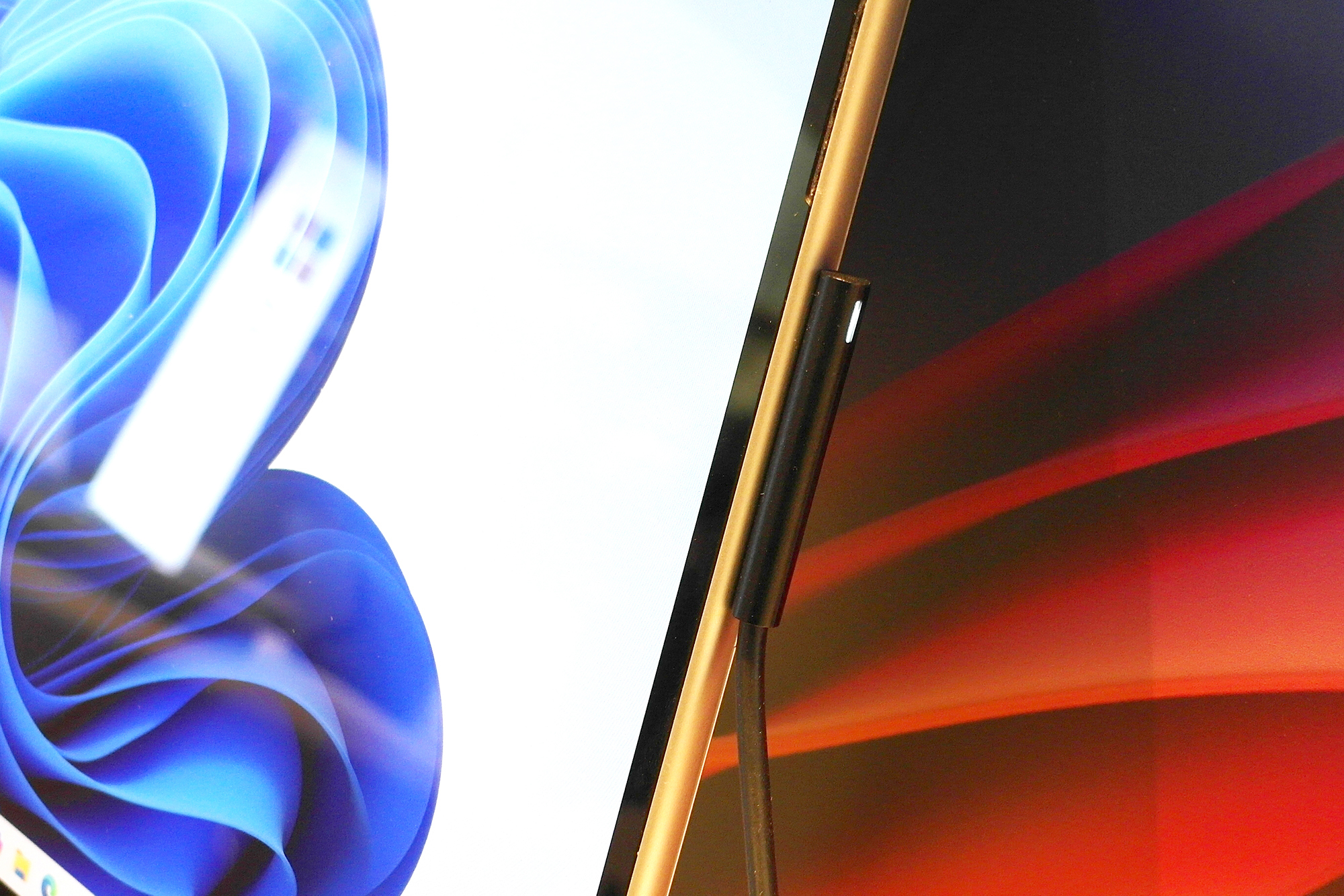서피스 프로 13인치의 가장 큰 특징은 윈도우 태블릿처럼 사용할 수 있다는 점인데요. 윈도우 11에 태블릿용 인터페이스가 내장되어 있어서 아이패드나 안드로이드 태블릿과 비교하면 약간 부족하지만 그래도 예전에 비하면 사용성이 좋아졌습니다. 그리고 베젤의 두께가 약간 두꺼운 편인데요. 손잡이가 있다고 편리하다는 의견이 있을 수 있고 반대로 세련되지 않은 것처럼 보일 수도 있습니다. 그 외에도 킥스탠드가 기본으로 장착되어 있다는 점도 편리한 부분입니다.