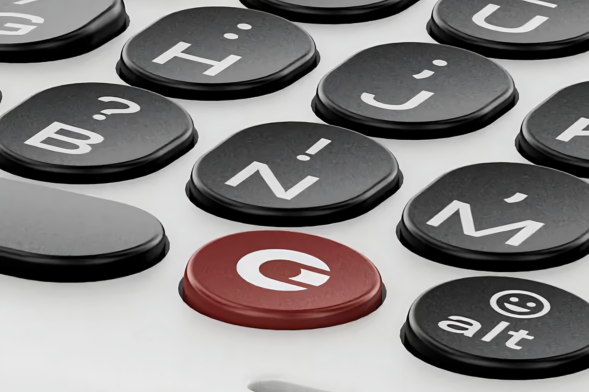 클릭스 커뮤니케이터의 옆면에는 LED가 내장된 버튼이 배치되어 있는데요. 특정 사람이나 앱에 따라서 컬러를 다르게 지정할 수 있습니다. 그리고 브러시드 알루미늄 측면 키도 준비되어 있습니다.