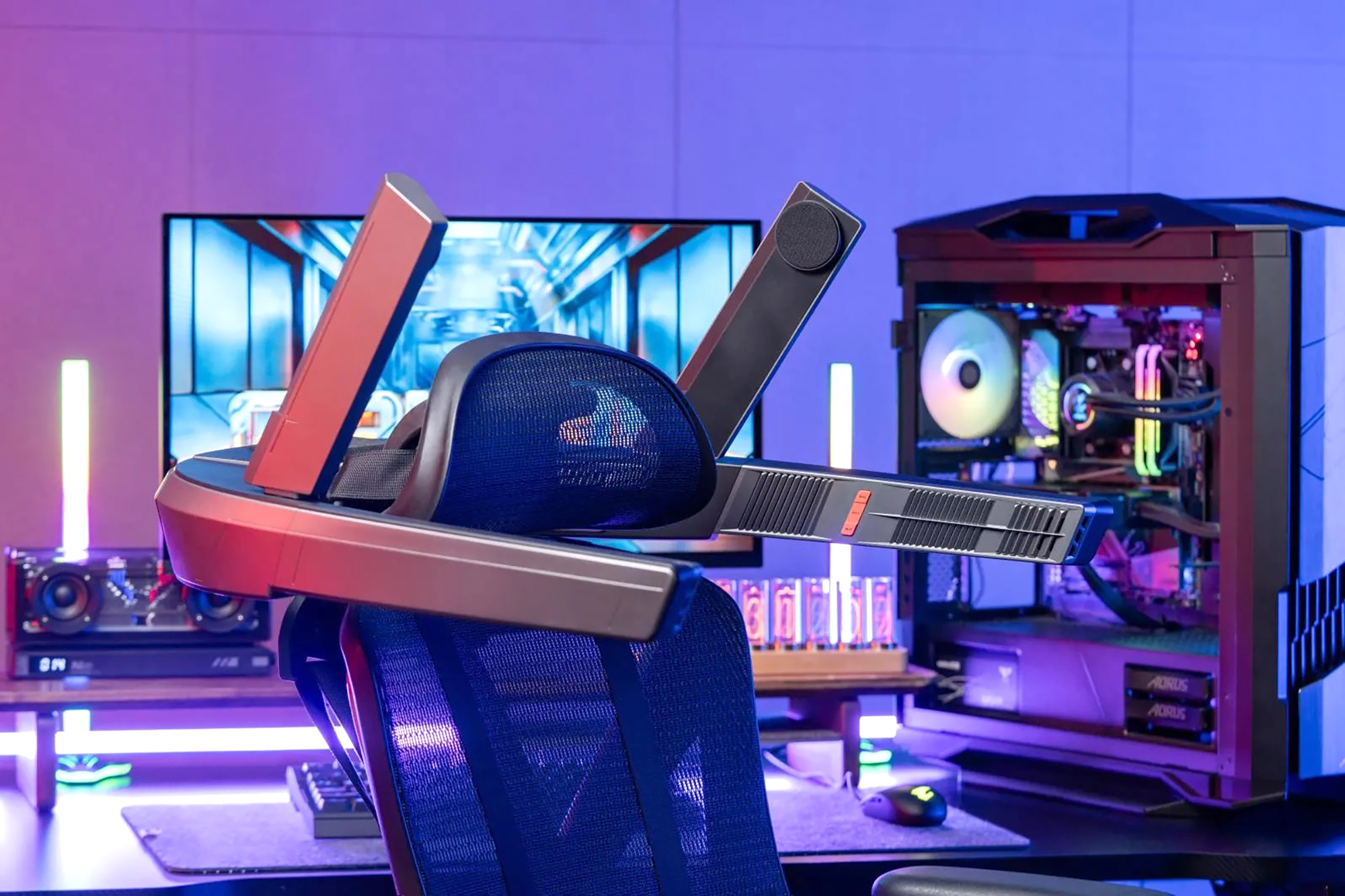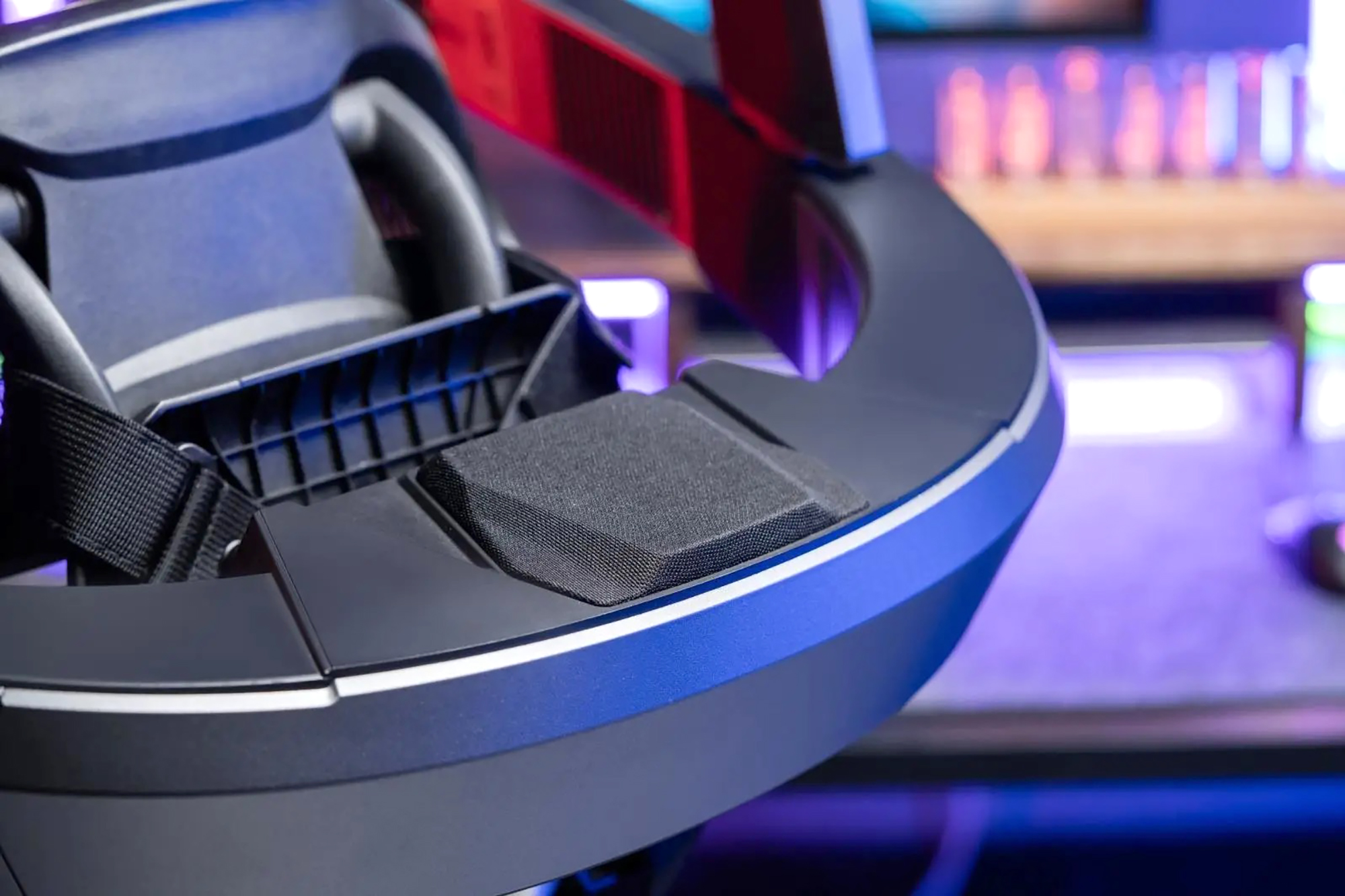 COLO GCS 7.1.2CH 사운드 시스템의 재미있는 부분은 일반적으로 책상에 설치하는 제품과는 다르게 의자에 장착해서 사용할 수 있는 제품이라는 점입니다. 방이 작은 분들이 활용하기에 적합한 제품이라고 할 수 있습니다.