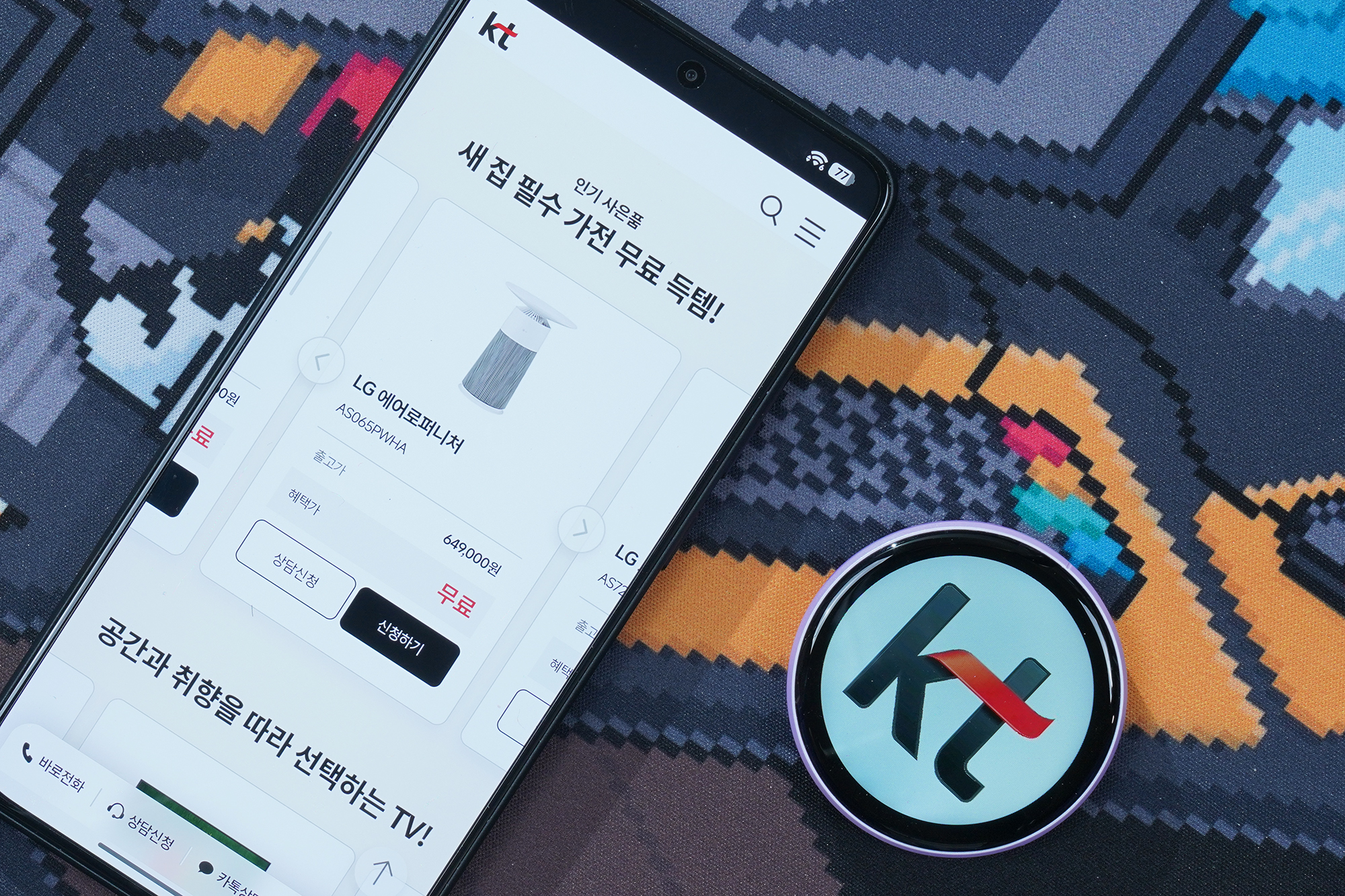 KT닷컴에서 인터넷+TV에 가입하면 모바일 상품권이나 혹은 가전 사은품을 받을 수 있는데요. 이사를 준비하는 분들이 새롭게 가전을 채워놓는 용도로 활용할 수 있습니다. 주요 제품을 살펴보면 LG 에어로퍼니처(AS065PWHA) 공기청정기와 LG 코드제로 A7(AS720WA)와 같은 제품이 준비되어 있습니다.
