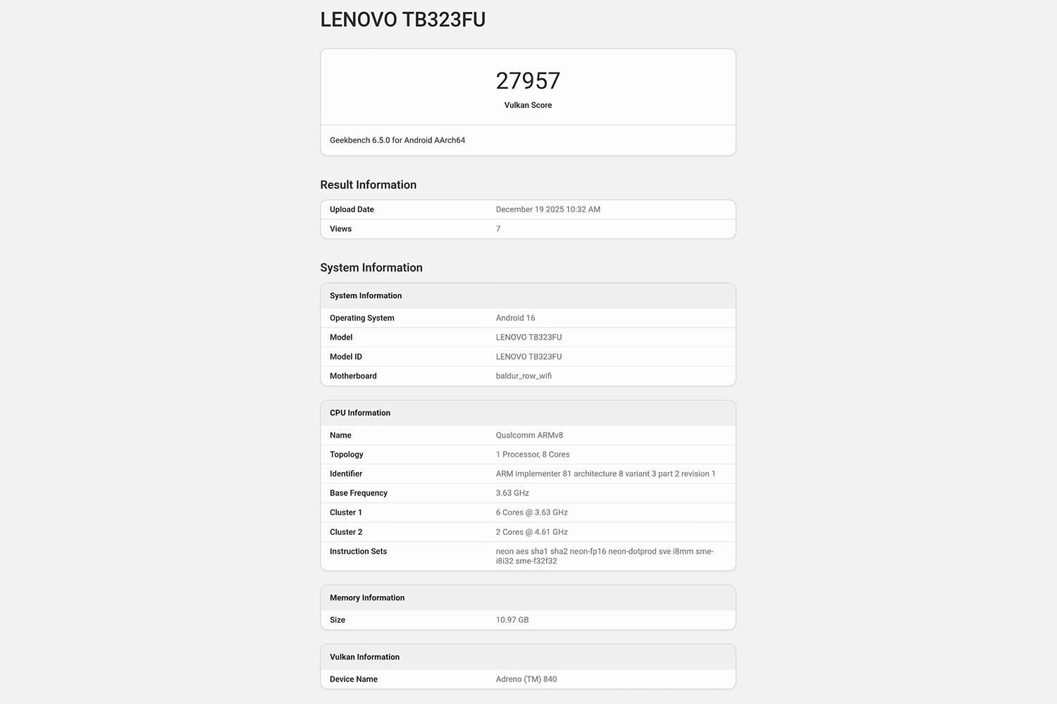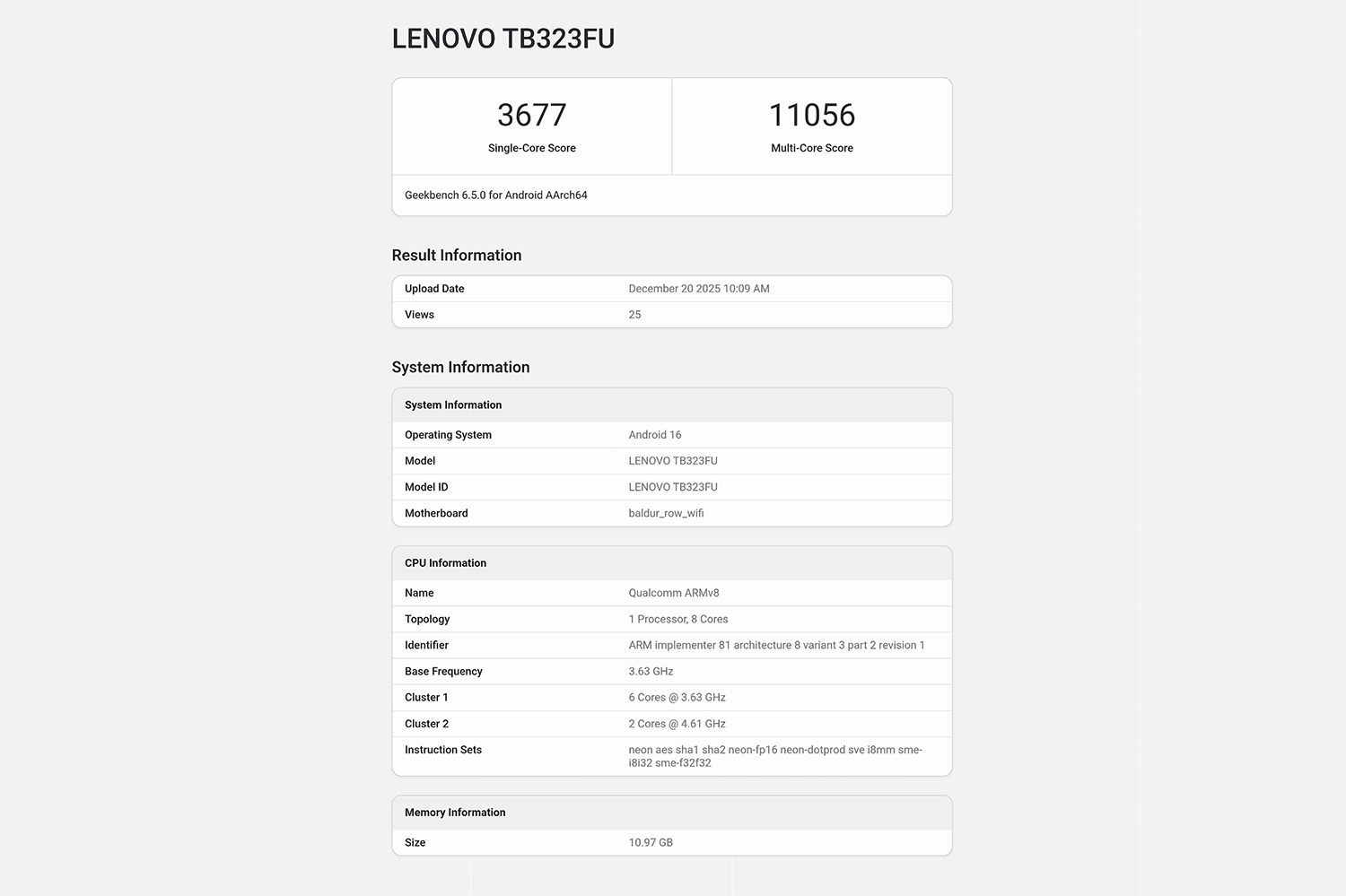 레노버 Y700 5세대 제품에는 퀄컴 스냅드래곤 8 엘리트 5세대 프로세서가 탑재될 예정인데요. 유출된 긱벤치 정보를 확인해 보면 싱글 코어는 3,677점, 멀티 코어는 11,056점으로 측정되었습니다. 안드로이드 진영에서는 현시점 최고의 CPU라고 할 수 있습니다. 그래서 모든 모바일 게임을 쾌적하게 플레이할 수 있다는 장점이 있습니다.