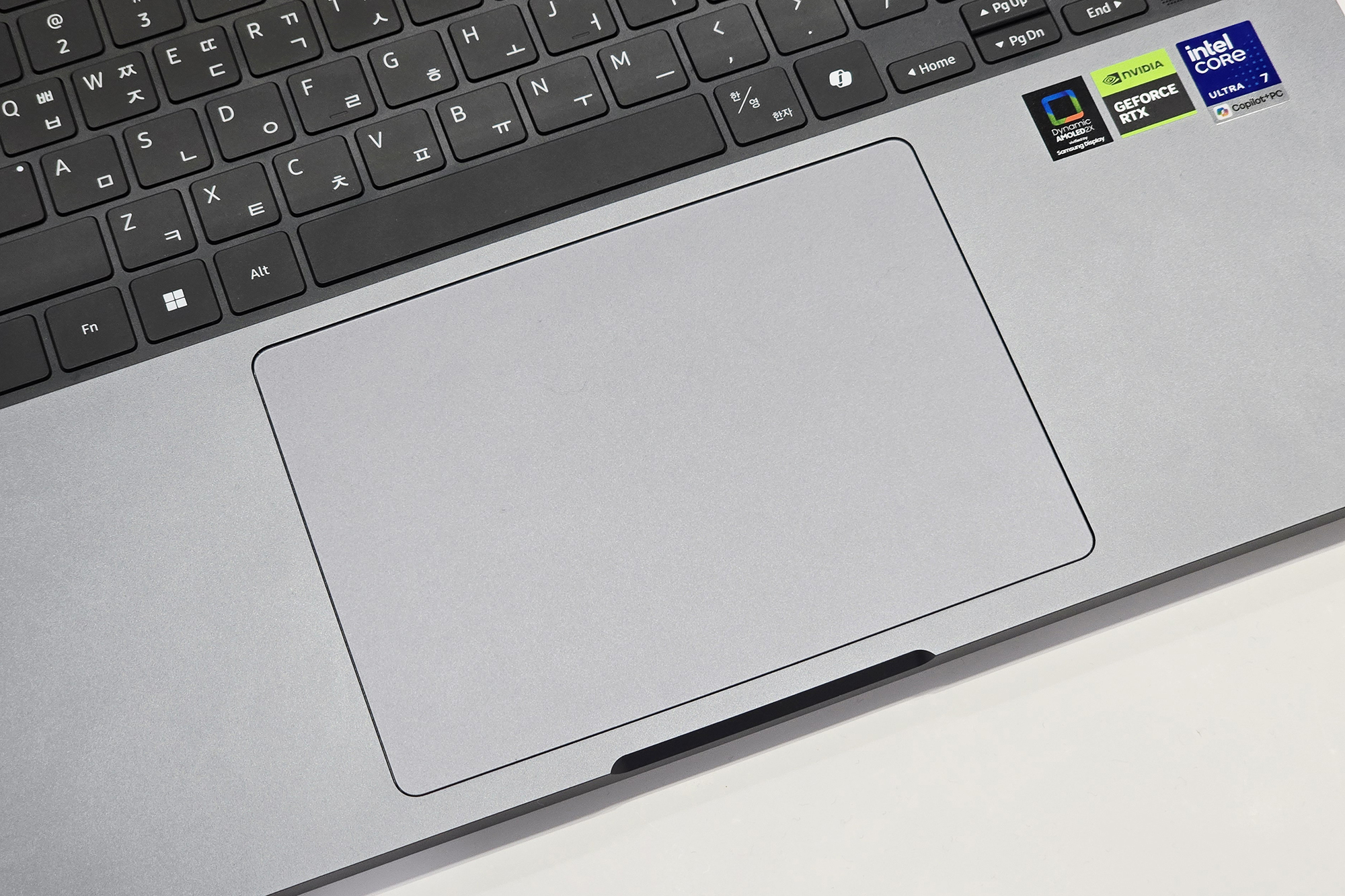 그리고 재미있는 부분은 햅틱 터치 트랙패드가 적용되었다는 점인데요. 진동의 질감이 좋은 편이어서 실제로 클릭하는 것과 같은 느낌을 받았습니다. 전체적으로 애플 맥북의 방향을 어느 정도 참조한 것으로 보입니다.