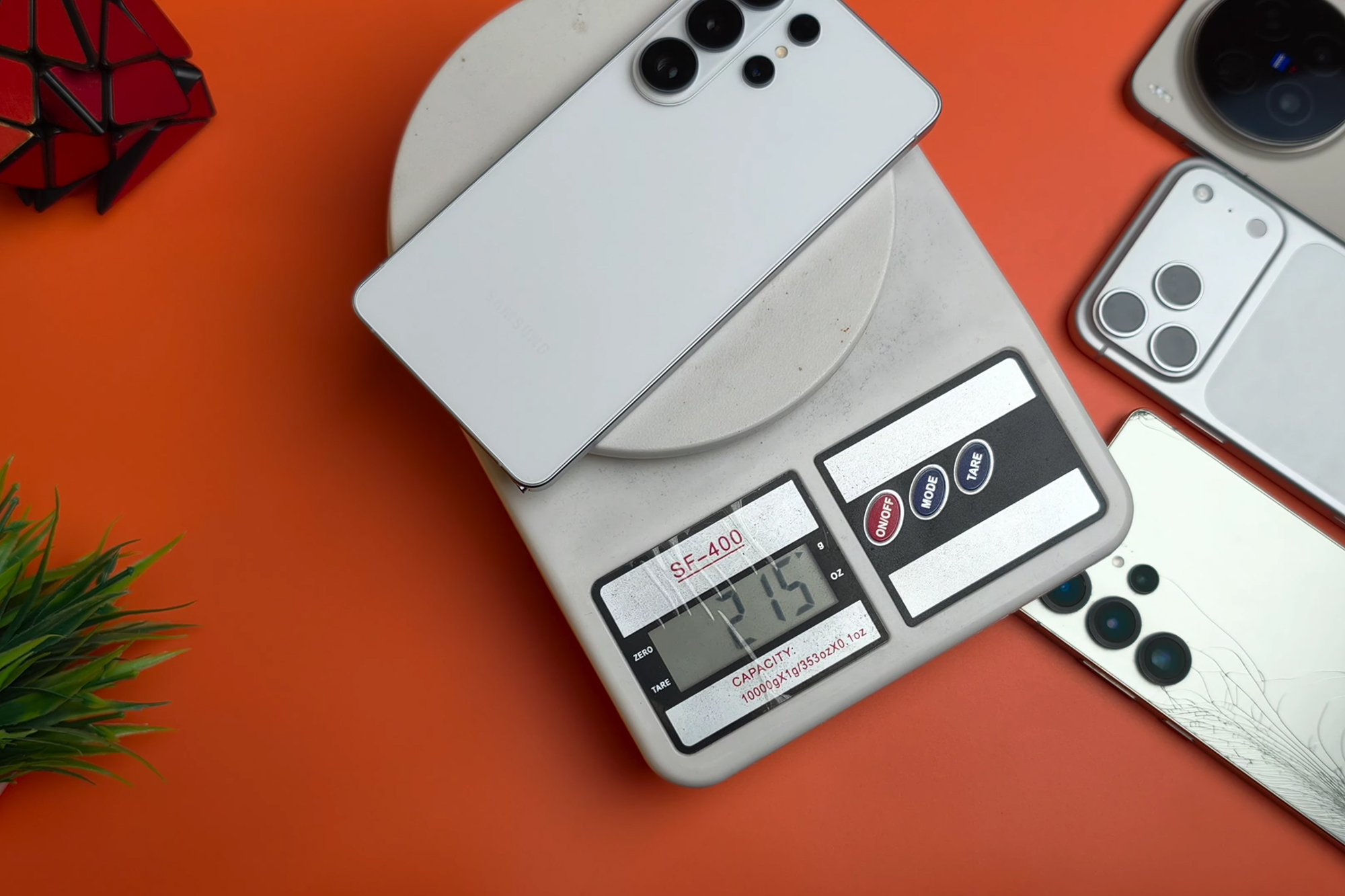 무게는 약 215g으로 측정되었는데요. 최신 루머인 214g과 얼추 유사한 것을 확인할 수 있습니다. 그리고 두께는 약 7.9mm인데요. 리뷰에서는 실제 측정까지는 이루어지지 않았습니다.