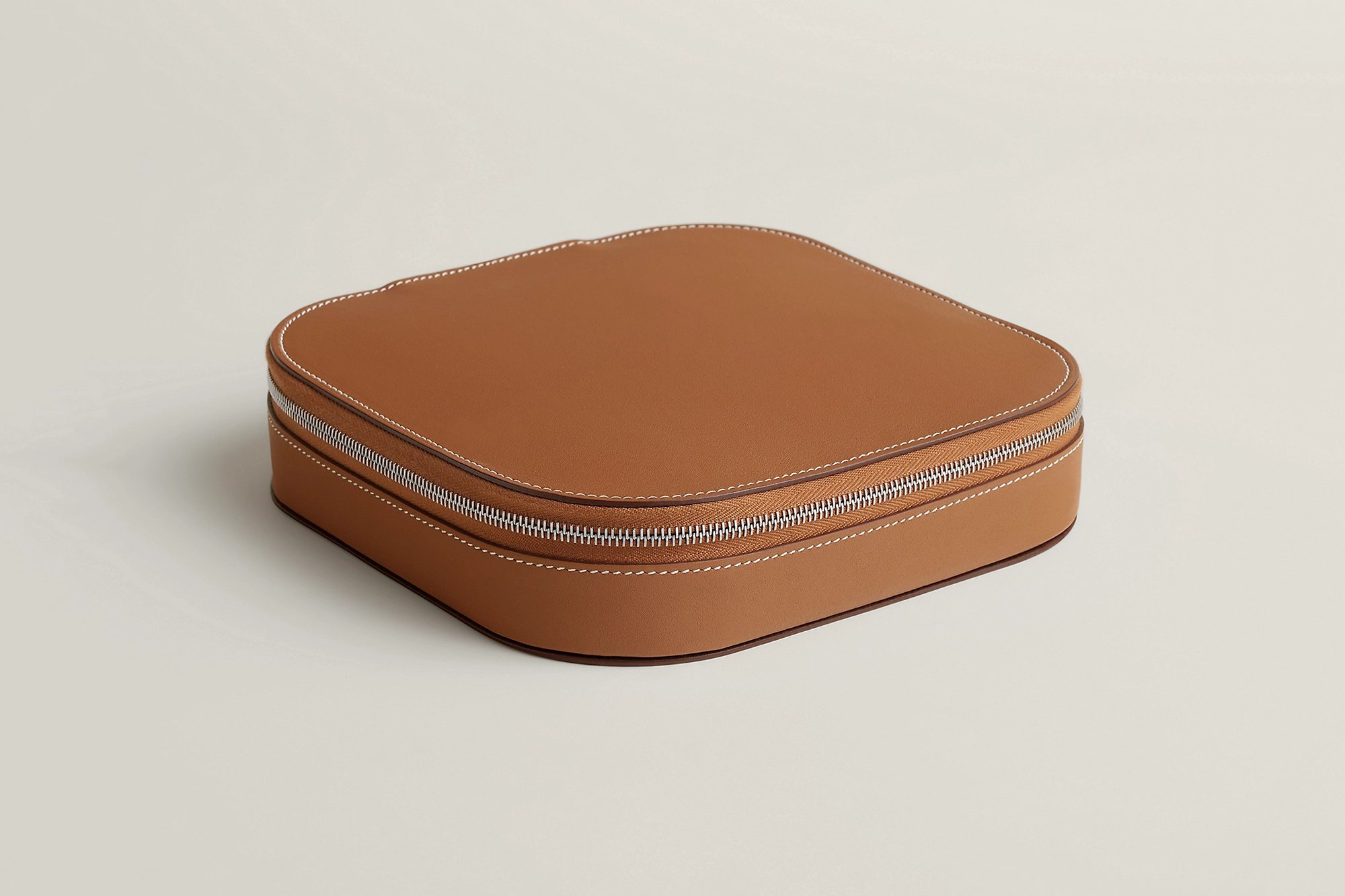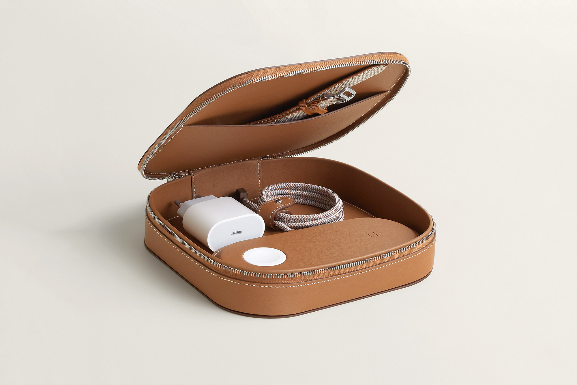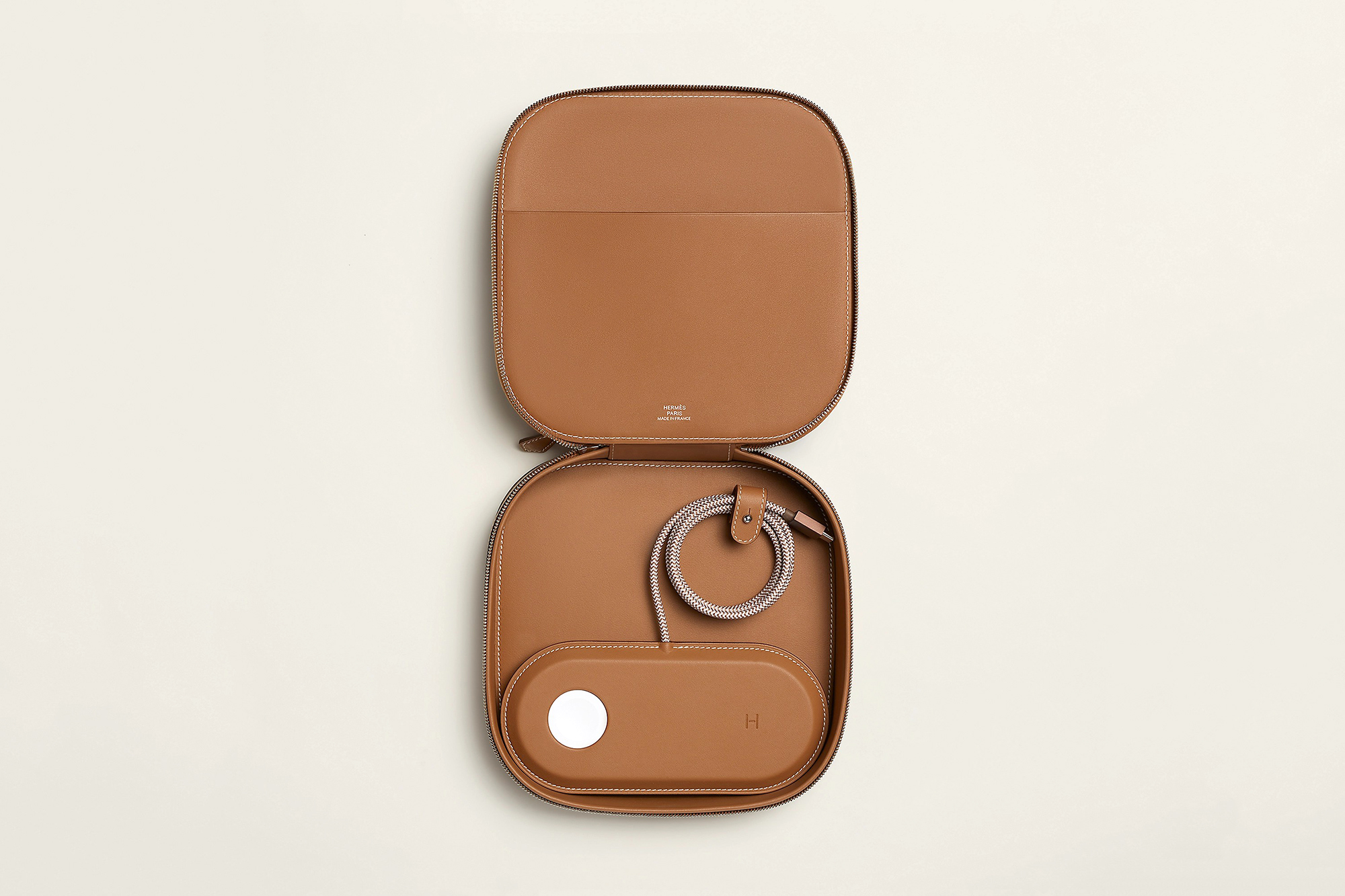 가장 먼저 살펴볼 제품은 그랜드 패독 케이스(Grand Paddock case)인데요. 패독 듀오 충전기와 어댑터 그리고 애플워치와 같은 제품을 수납할 수 있도록 제작되었습니다. 그리고 제품 자체는 당연하게도 골드 스위프트 송아지 가죽으로 프랑스에서 제작되었다고 합니다. 참고로 애플 어댑터는 별도로 구매해야 합니다.