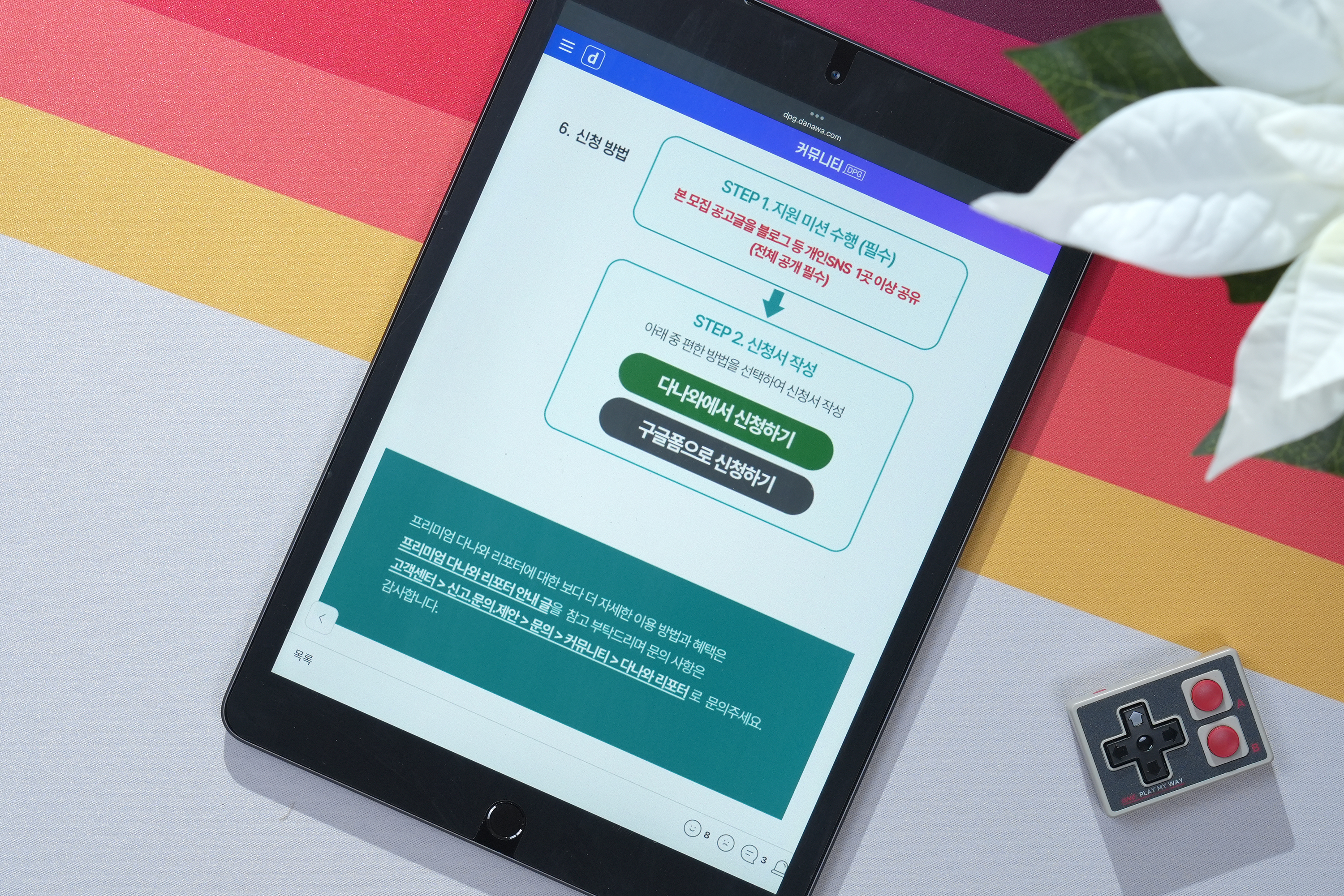 다나와 프리미엄 리포터 19기에 지원하는 방법은 간단한데요. 아래에 있는 링크에 접속한 후에 간단한 미션을 수행하고 다나와나 구글 폼을 통해서 신청해 주면 됩니다. 과정 자체는 간단한 편이라고 g라 수 있습니다.
