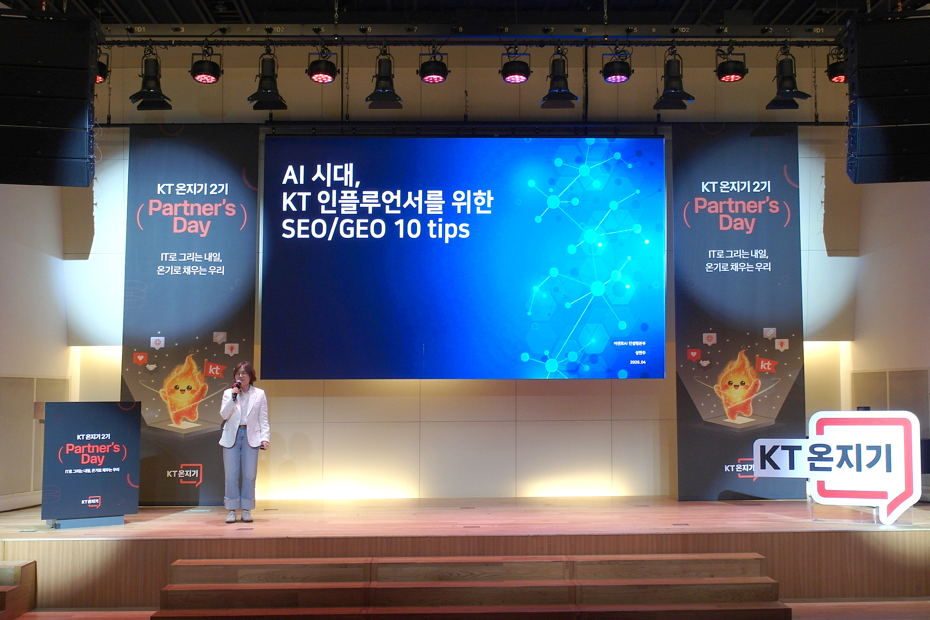 어센트 AI 컨설팅 본부 성현주님의 AI 시대 KT 인플루언서를 위한 SEO/GEO 10개의 팁이라는 주제로 초청 경연이 진행되었는데요. AI 인공지능 시대에도 여전히 텍스트 기반의 데이터들은 의미가 있다는 내용으로 다양한 사례를 들어서 설명해주셨습니다. 의미 있는 시간이라고 생각되었습니다.