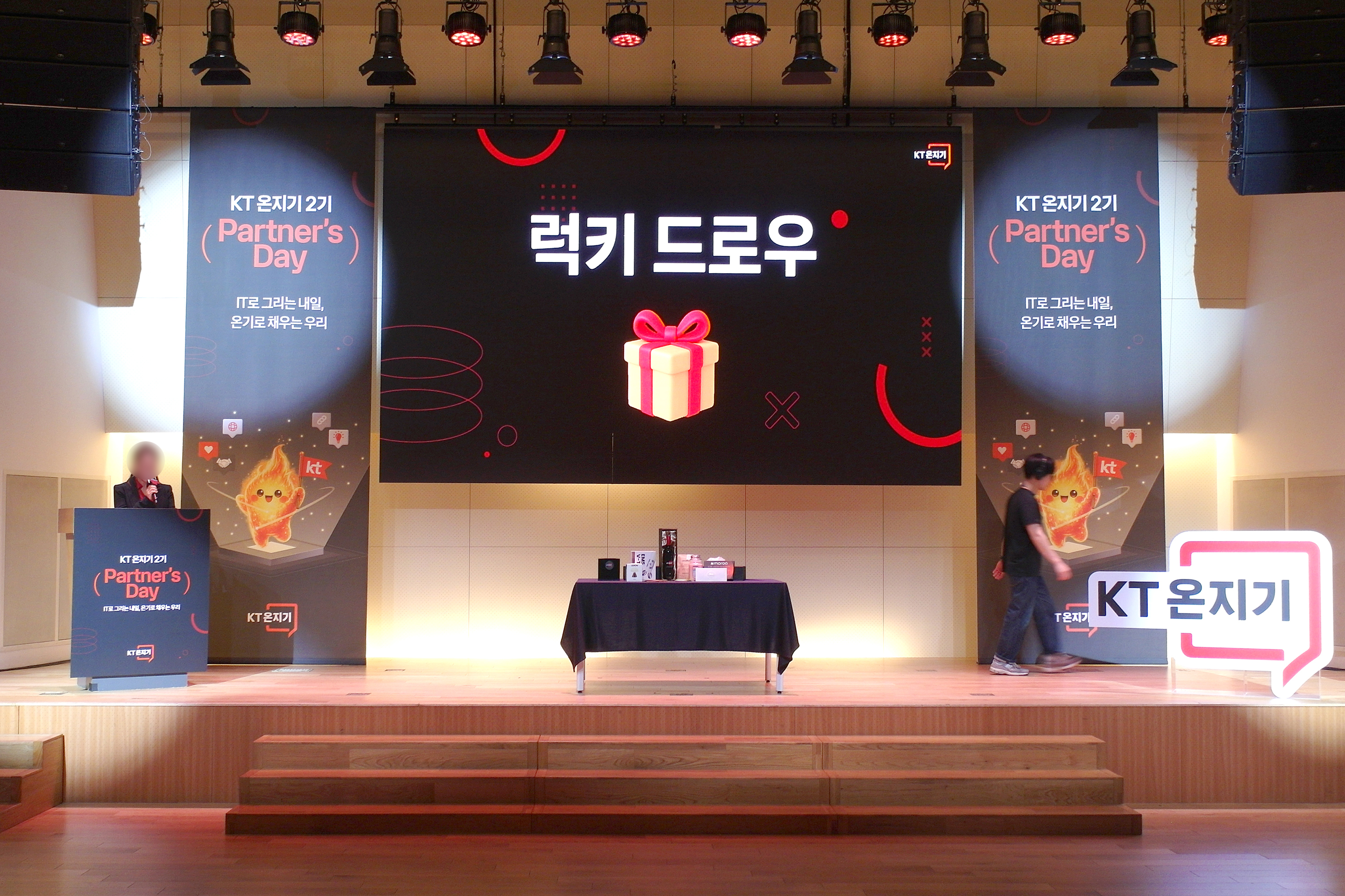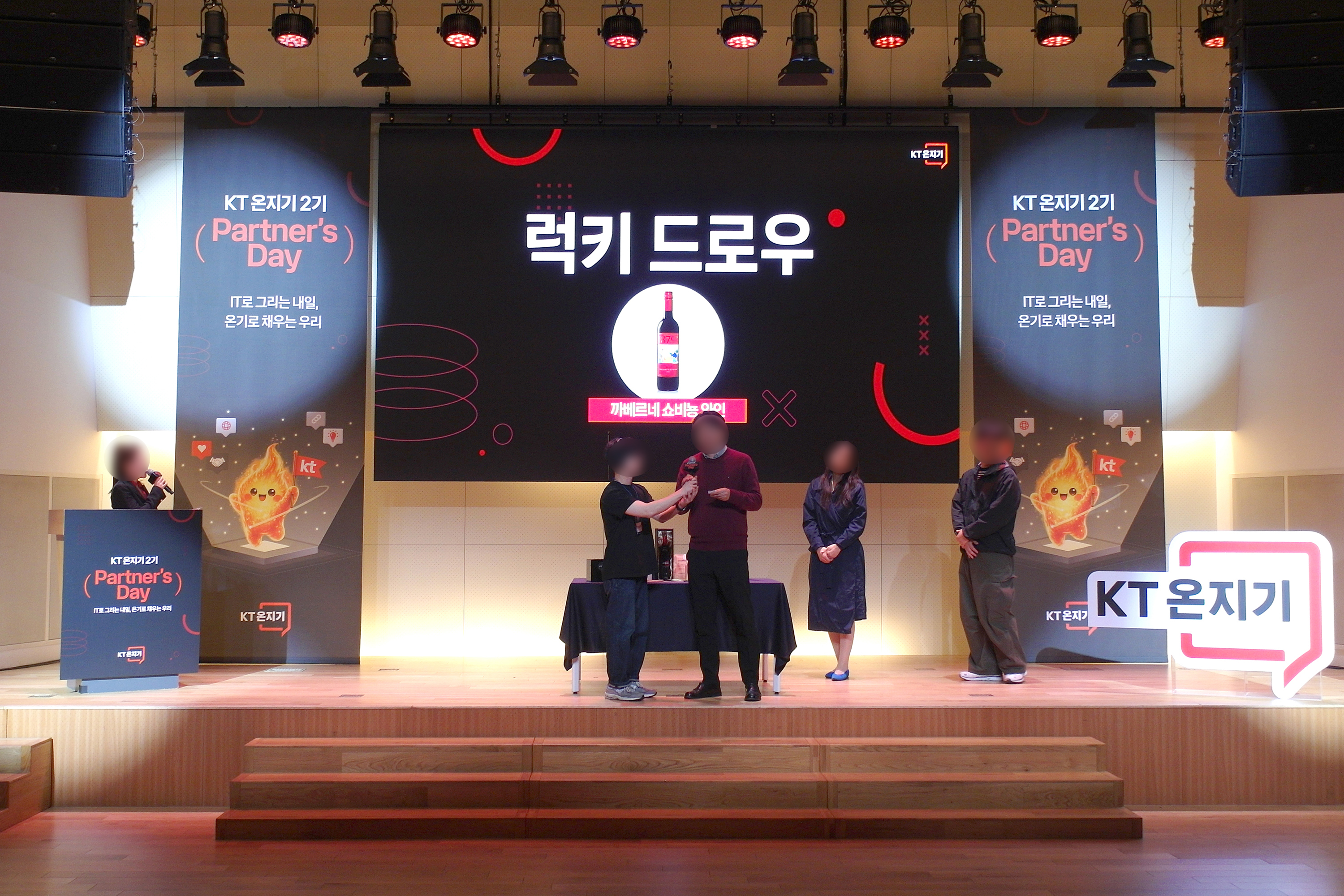 KT 온지기 2기 발대식이 완료된 후에 이벤트의 꽃이라고 할 수 있는 럭키 드로우가 진행되었는데요. 와인을 비롯한 다양한 종류의 경품이 제공되었고 핵심이라고 할 수 있는 소피텔 앰배서더 서울 호텔 숙박권은 상무님의 뽑기로 제공되었습니다.