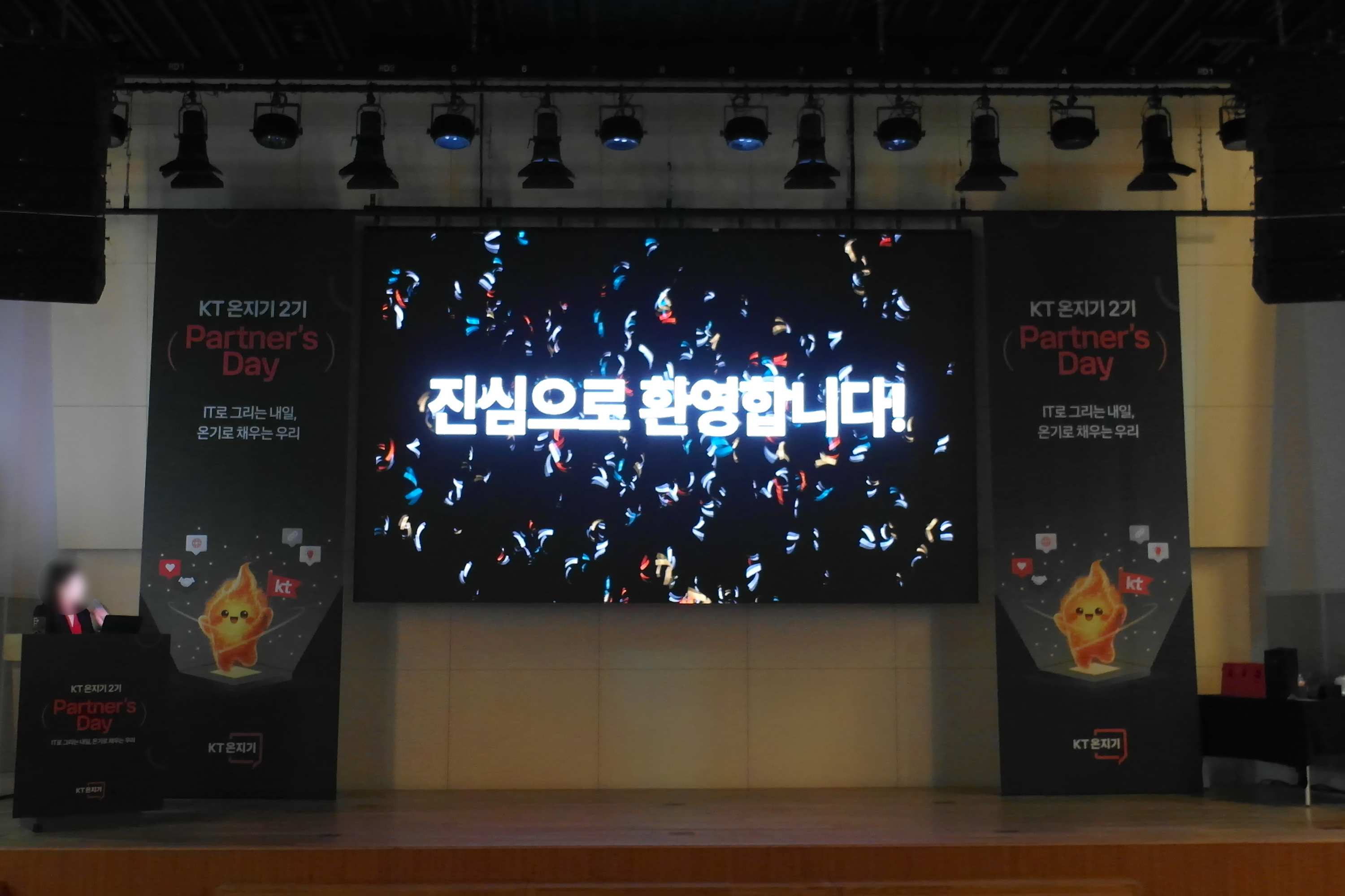 다음에는 KT 디지털마케팅팀 이원태 팀장님의 환영사가 진행되었는데요. 이번 KT 온지기 2기 프로그램이 단순히 KT를 알리는 것을 넘어서 100명의 크리에이터들에게 의미 있는 경력이 되었으면 좋겠다는 바람이 담겨 있었습니다. 홍보보다는 조금 창작자들과의 상생에 가까운 프로그램이라는 인상을 받았습니다.