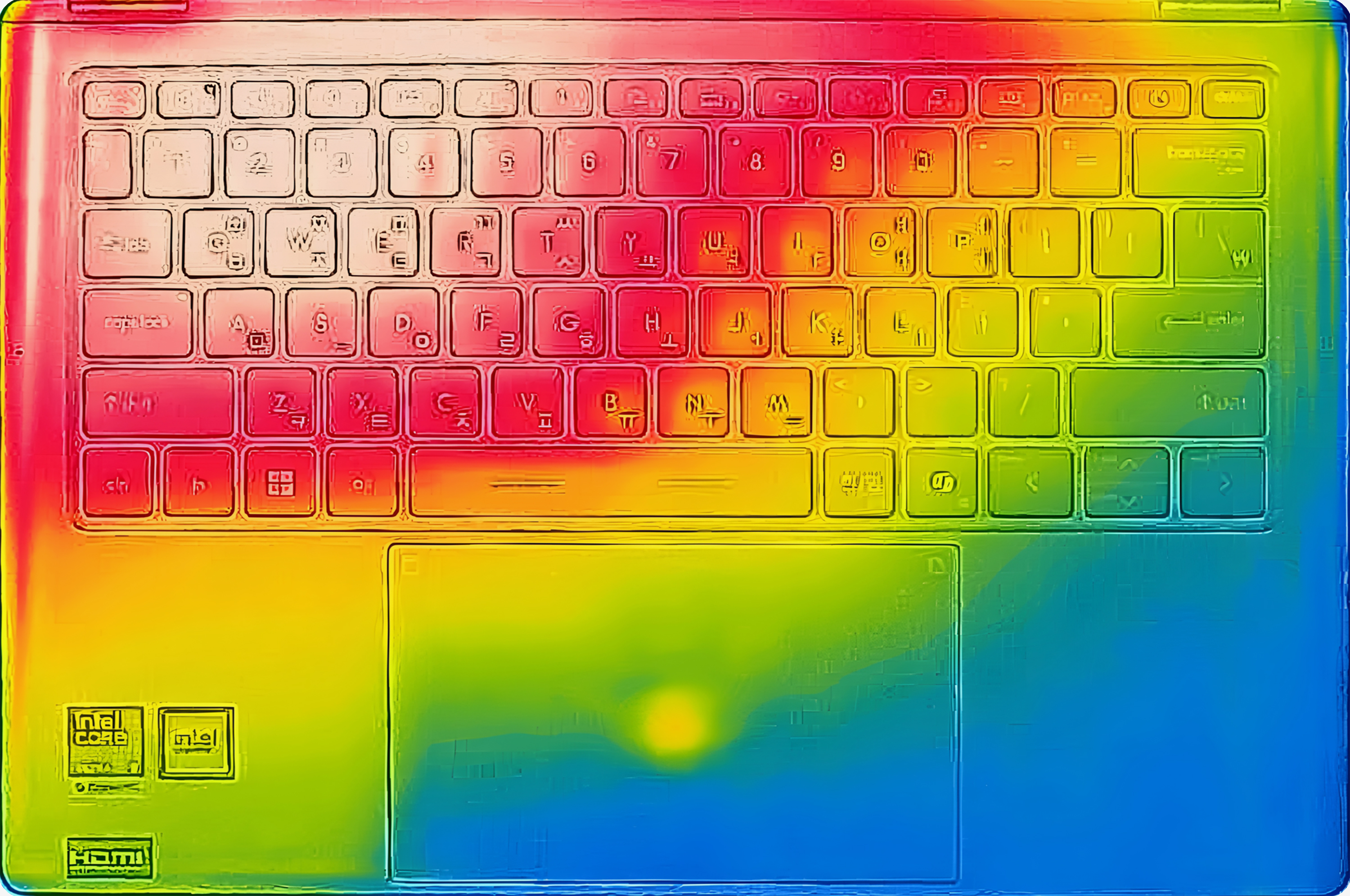 MSI 프레스티지 14 AI+ 노트북의 동작 모습을 열화상 카메라를 통해서 촬영하면 발열 특성을 파악할 수 있는데요. 상판은 최대 32.7도 최저 25.7도, 하판은 최대 37.7도 최저 27.3도, 디스플레이는 35.0도 최저 26.7도 키보드는 최대 37.4도 최저 27.8도로 측정되었습니다.