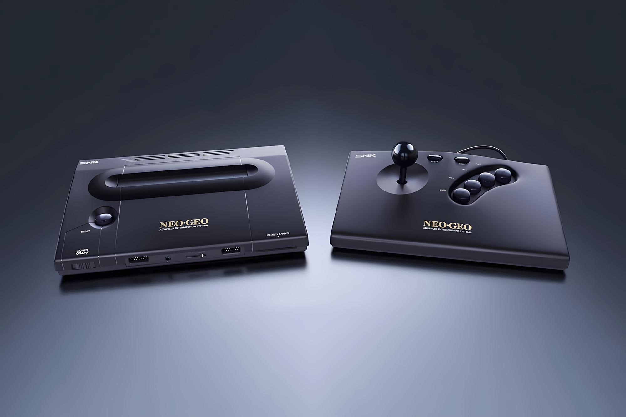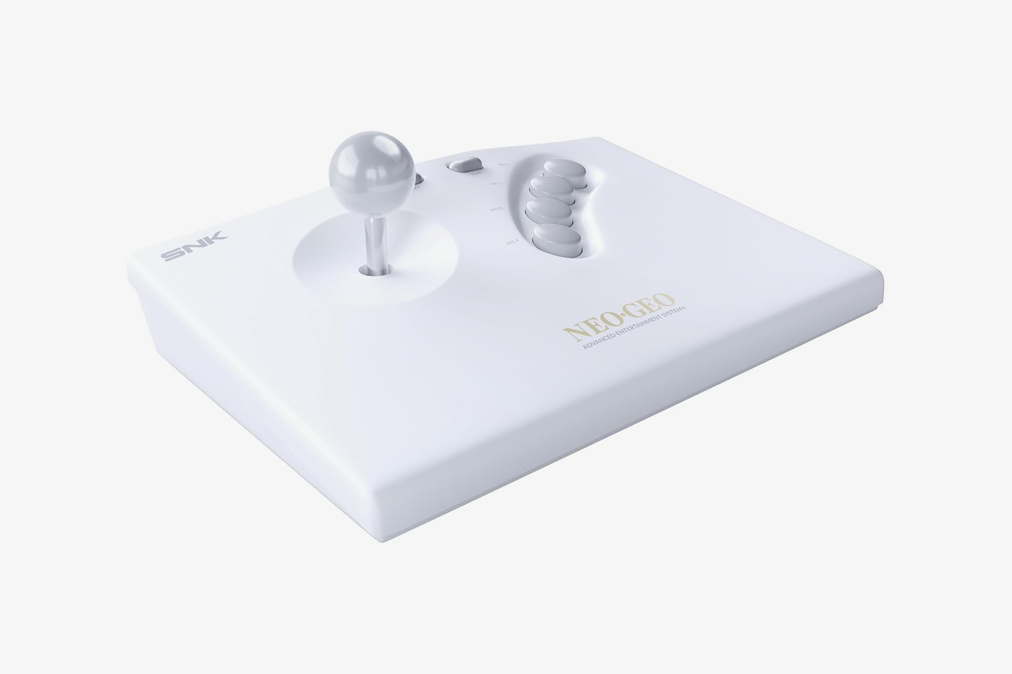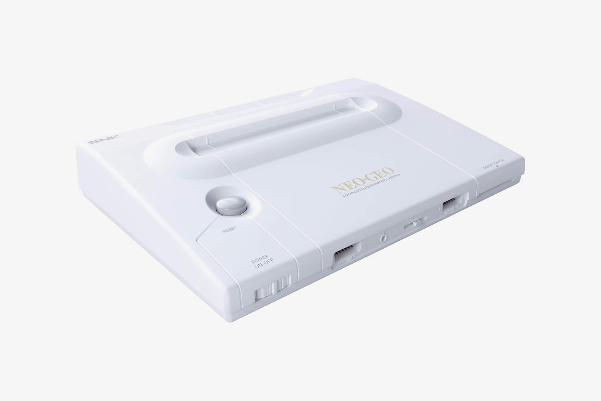 구성품 : 네오지오 AES+ 본체, 무선 아케이드 스틱, 메탈 슬러그 게임 카트리지, 메모리 카드, 아케이드 스틱용 무선 동글, 아케이드 스틱용 15핀 케이블, 아케이드 스틱용 USB-C 충전 케이블, HDMI 케이블, 2A 전원 어댑터