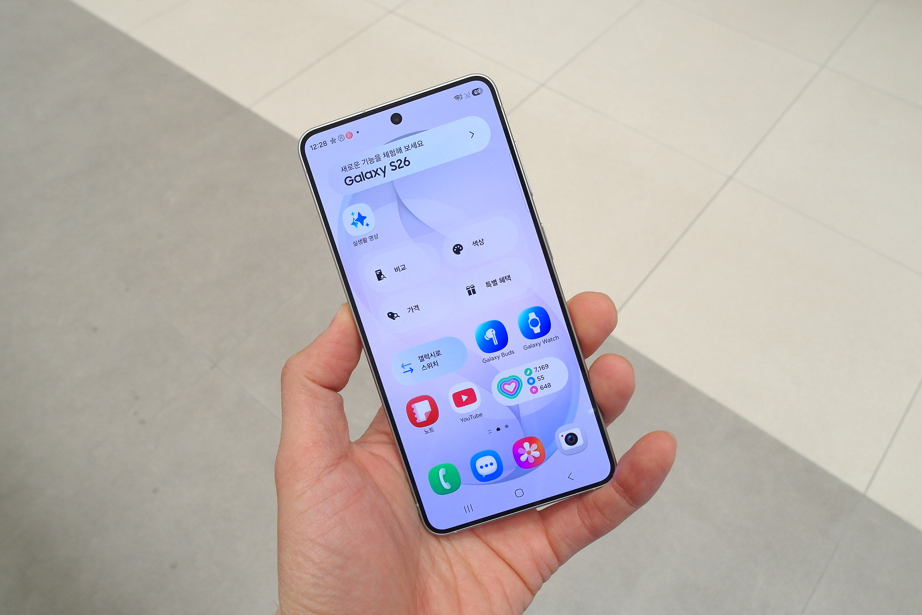 갤럭시 S26 기본 모델은 167g이라는 가벼운 무게를 가지고 있는 제품입니다. 휴대성을 중시하는 분들에게 상당히 메리트가 있을 것으로 예상합니다. 특히 실제로 살펴보면 무게가 주는 감동이 있습니다.