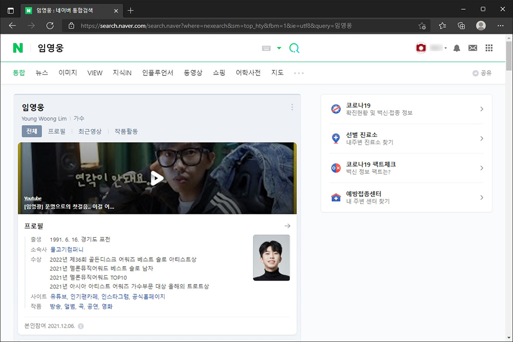 가장 먼저 네이버에서 임영웅을 검색하고 작품활동을 확인해 보면 방송과 앨범 등의 정보가 표시되고 있습니다. 우리는 여기서 특정 노래를 다운로드 받아야 하므로 곡 정보를 살펴봅니다. 참고로 (Inst)라는 표시가 있는 노래는 가사가 나오지 않고 전주만 나오니 구매하시면 안 됩니다.