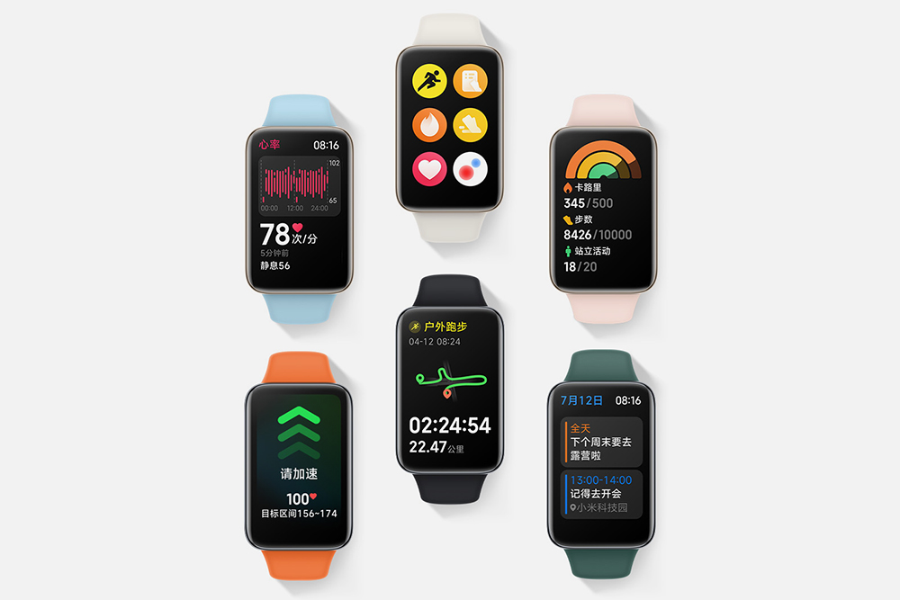 샤오미 미밴드 7 프로에는 총 6가지 종류의 스트랩이 같이 출시되고 가죽 질감의 실리콘 시게줄도 준비되어 있습니다. 전체적인 디자인이 깔끔한 편이어서 자신의 취향에 맞는 제품을 선택할 수 있습니다.