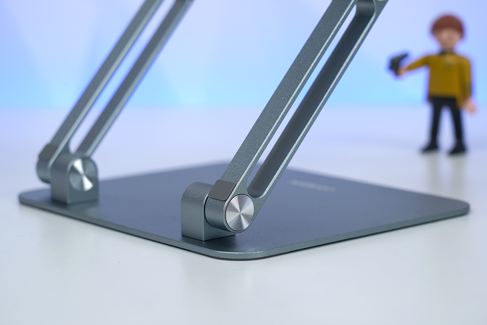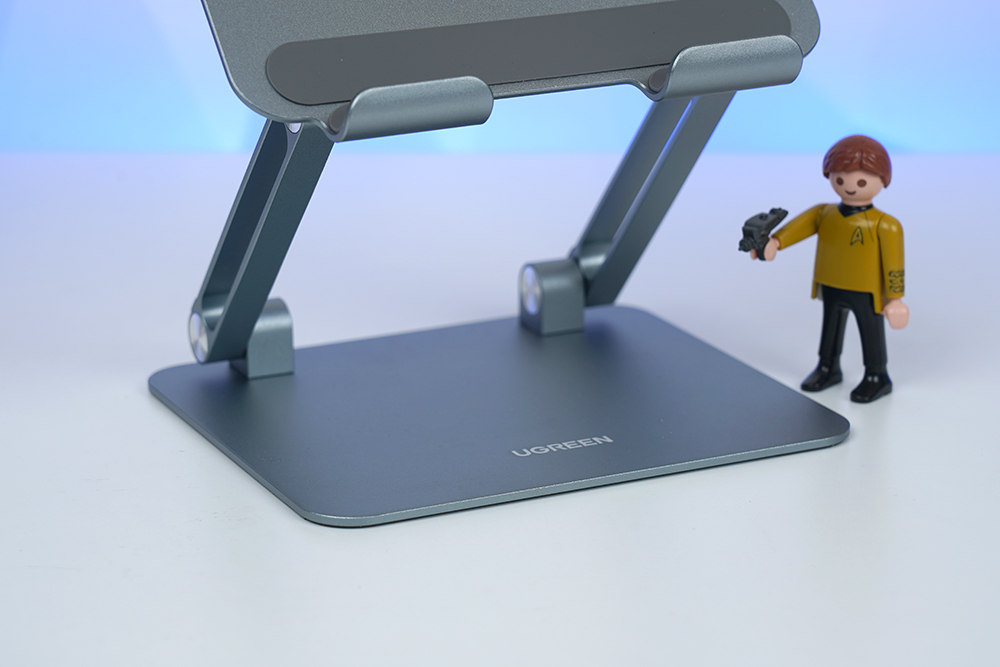 유그린 더블폴딩 태블릿 거치대의 베이스는 큼지막한 편이어서 안정적으로 태블릿을 거치할 수 있고 상단에는 UGREEN이라는 문구가 각인되어 있습니다. 그리고 메탈 소재로 제작되어서 단단한 느낌을 주는 편입니다.