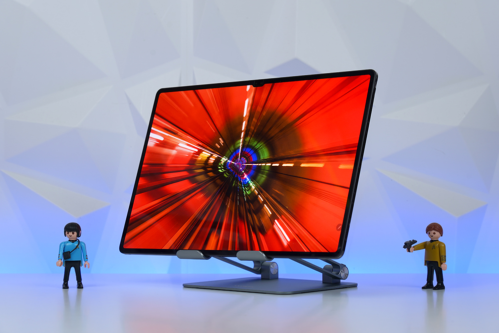 다음에는 14.6인치 대화면 디스플레이를 탑재한 삼성 갤럭시탭 S8 ULTRA도 크게 불편함 없이 유그린 더블폴딩 태블릿 거치대에 올려서 사용할 수 있었습니다. 물론 혹시나 잘 못 건드리면 미끄러질 수 있으니 케이스와 함께 사용하는 것을 권장합니다.
