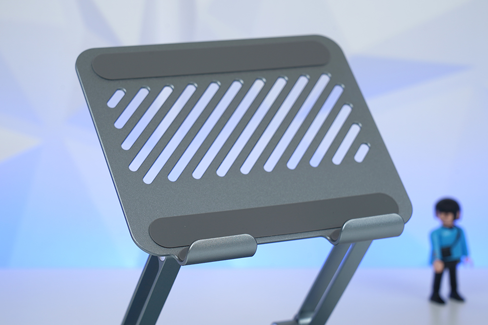 그리고 실제로 태블릿이 거치되는 부분에는 흠집을 방지하는 안티 스크래치 디자인이 적용되었습니다. 그리고 U자 형태의 후크 부분에도 고무 패드가 부착되어 있어서 태블릿이 미끄러지는 것을 방지해주는 역할을 합니다.