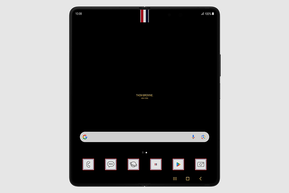 갤럭시 Z 폴드5 톰브라운 에디션은 브랜드 특유의 빨간색과 흰색 그리고 파란색 시그니처 패턴으로 제작되었고 후면은 패브릭 질감을 표현했다고 합니다. 그리고 힌지 부분은 골드 색상이 적용되었습니다. 그 외에도 특별한 UX 테마가 적용되어서 잠금화면, 배경화면, 앱 아이콘에도 톰브라운의 디자인이 적용되었습니다.