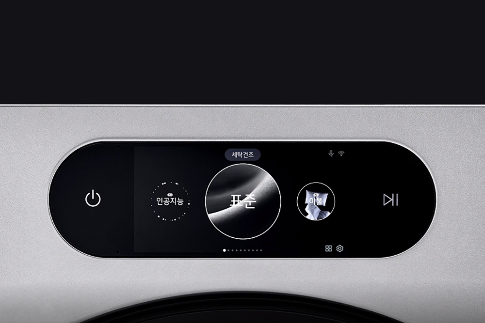 LG 시그니처 세탁건조기의 또 다른 특징은 7인치 와이드 디스플레이가 탑재되었다는 점입니다. 그래서 터치 방식으로 다양한 조작을 할 수 있습니다. 그 외에도 세탁 예상 시간을 알려주거나 음성 인식 기능 등을 내장하고 있습니다.